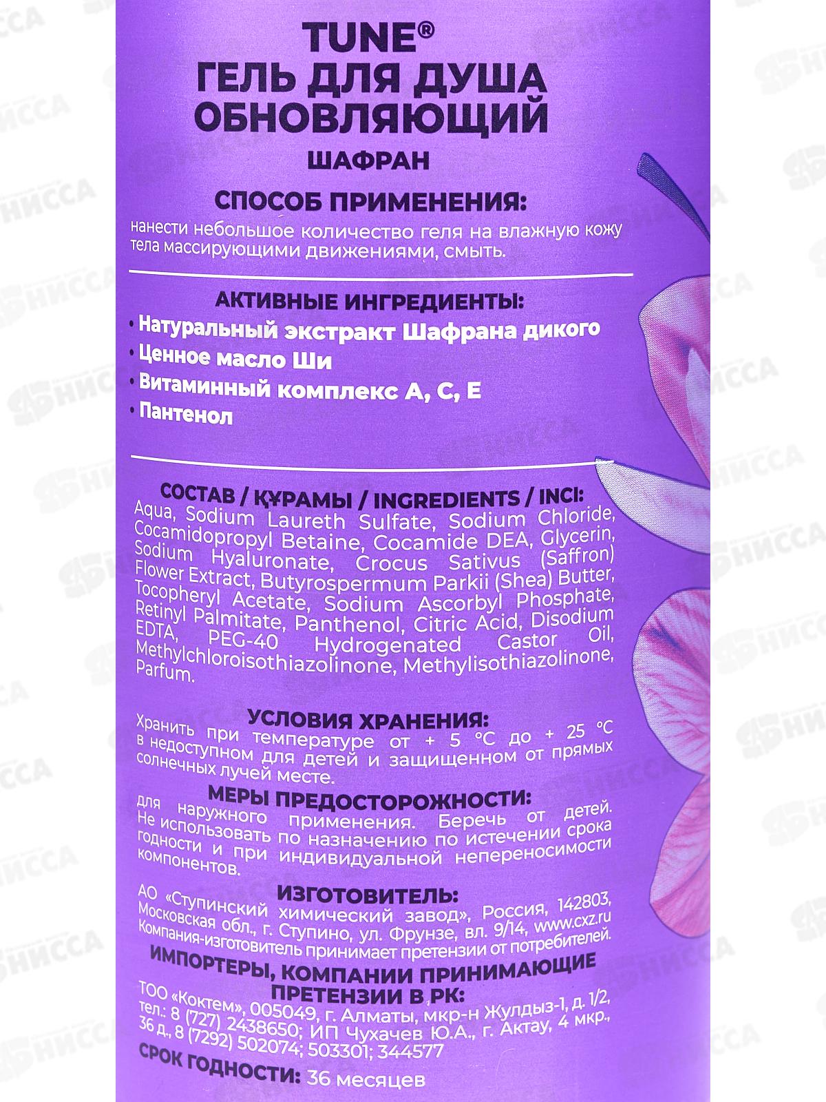 TUNE гель для душа обновляющий Шафран с дозатором 500мл *12 24312