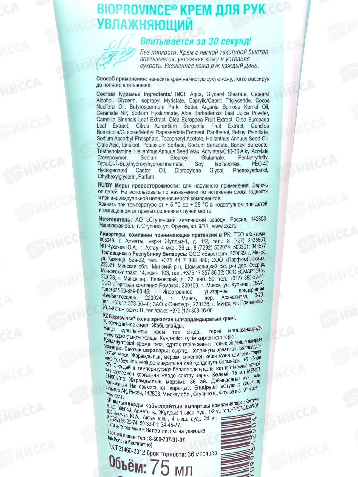 BioProvince Крем для рук увлажняющий 75мл 24360 *24