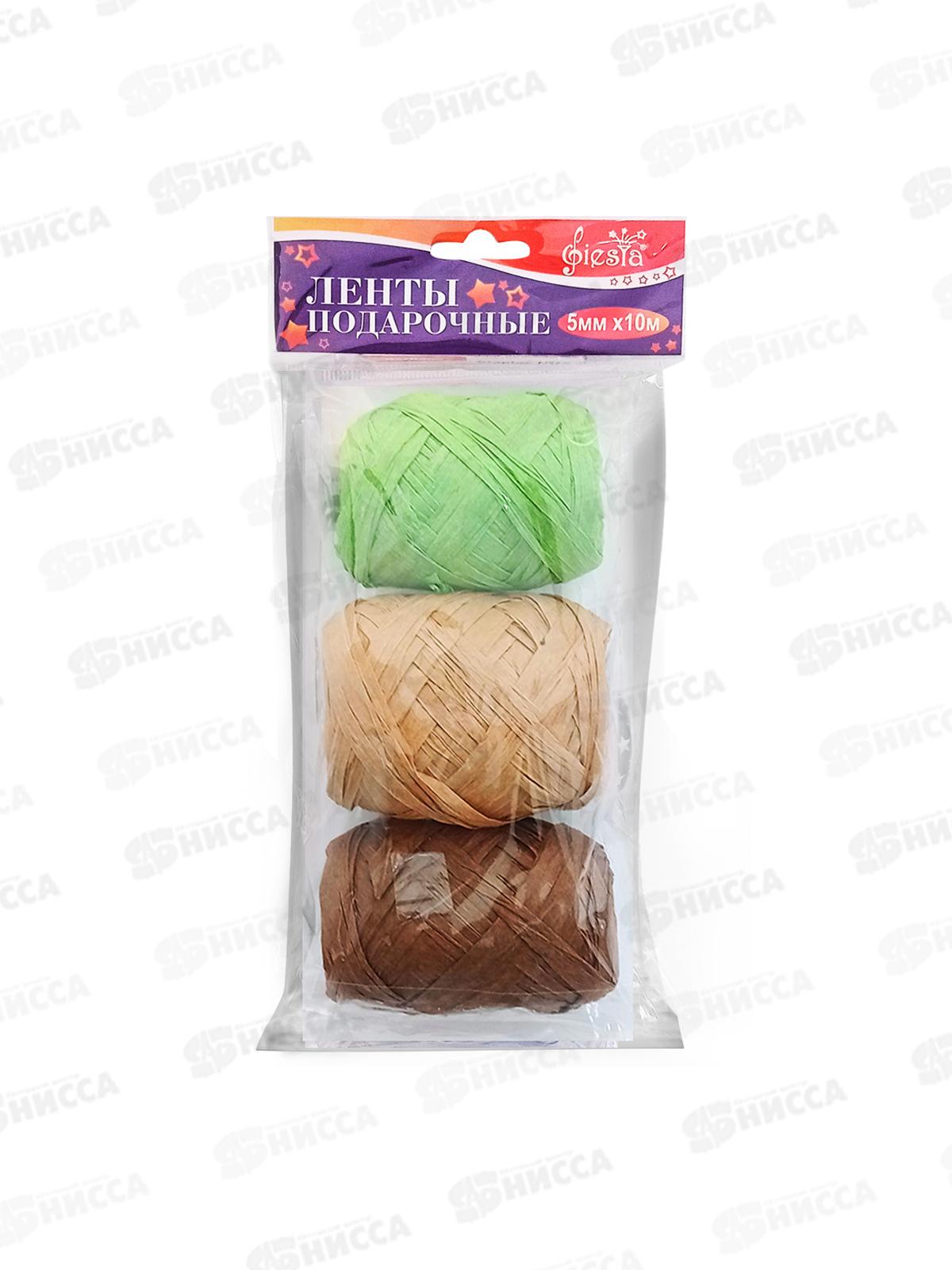 Лента подарочная 5мм*10м*3шт Рафия(зел-беж-шок.коричн)) RF-3