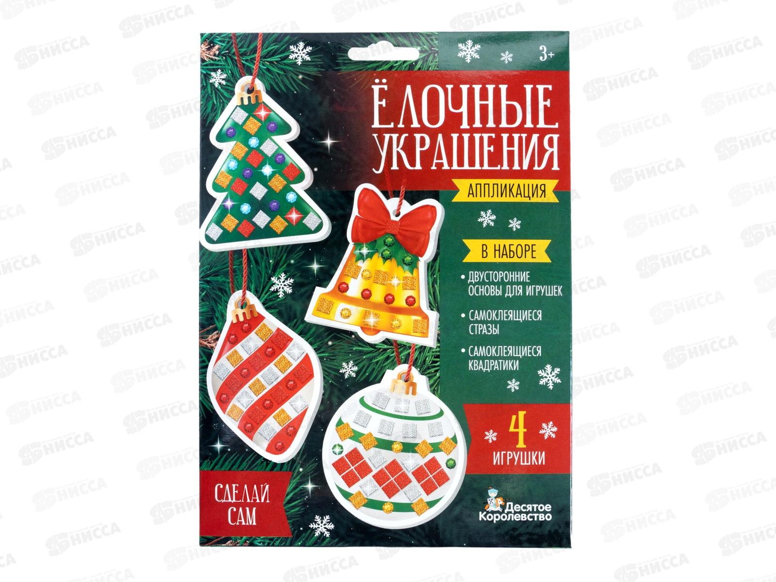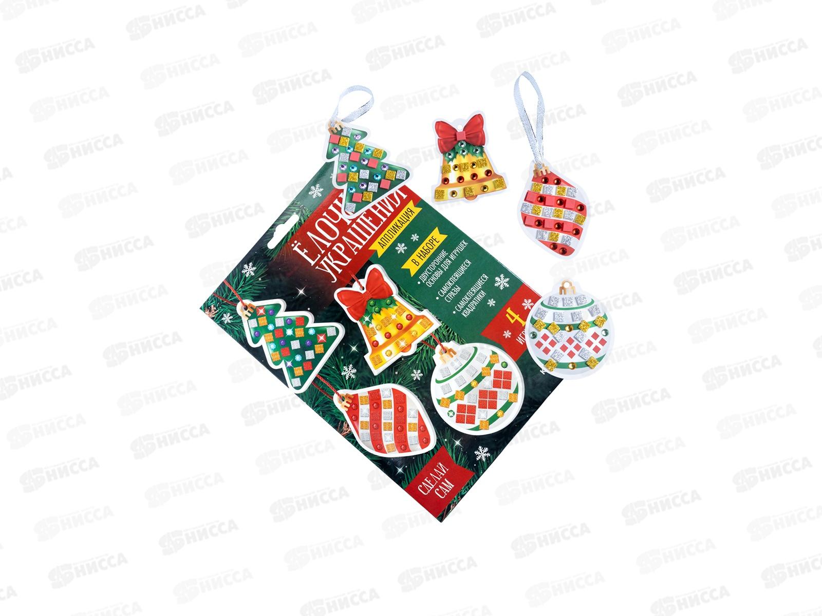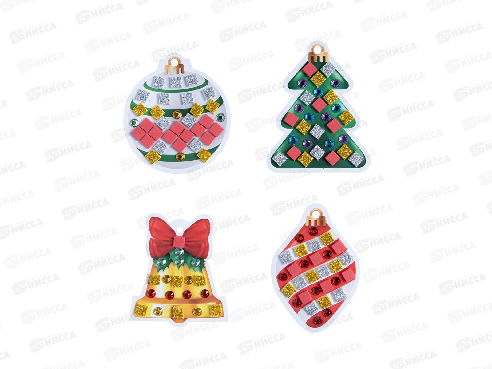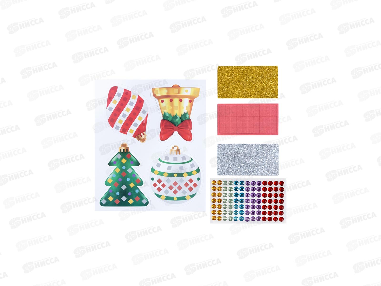 Аппликация "Елочные украшения" 4шт (3цв. 150эл, стразы 91шт) 05853