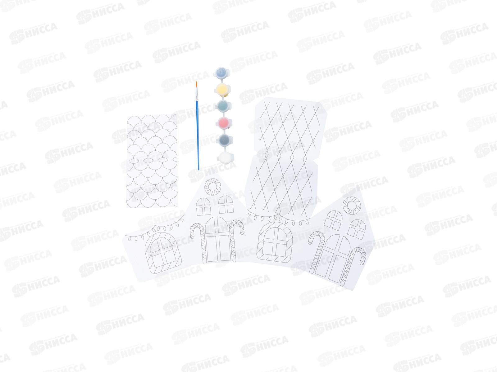 Комплектация: 3 домика, 3 елки, снеговик, медведь, 6 красок, кисть