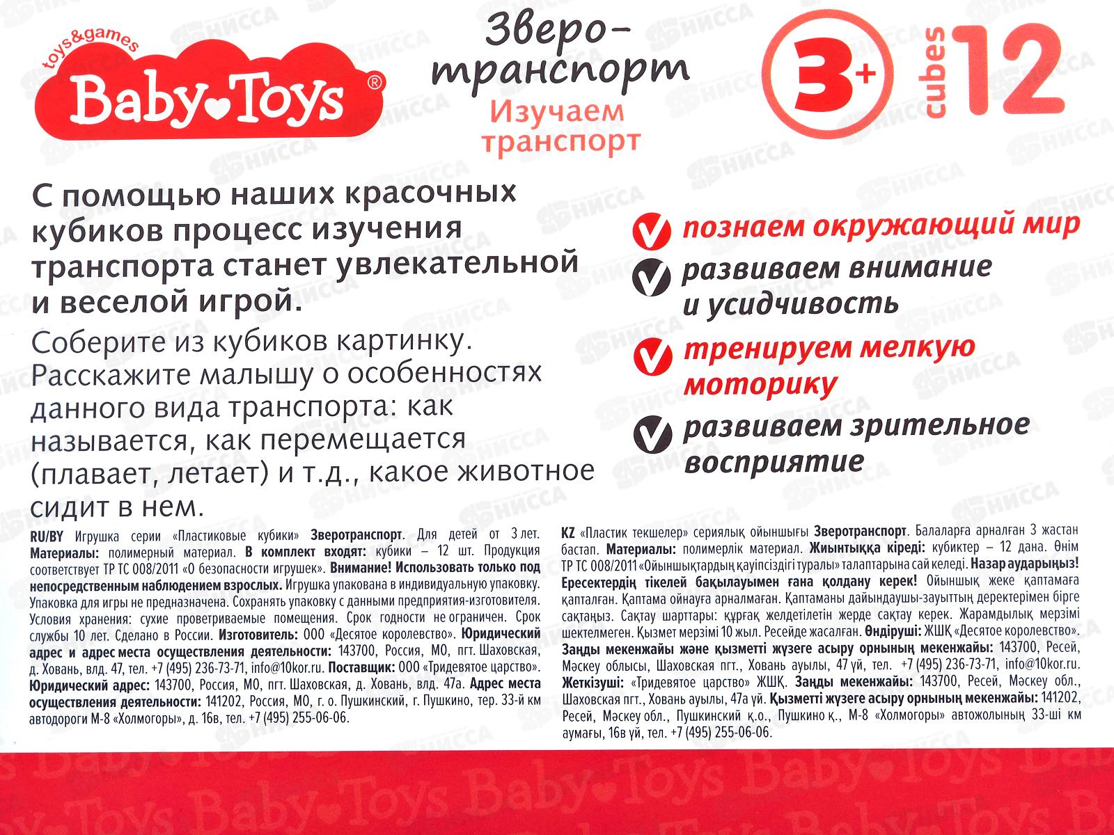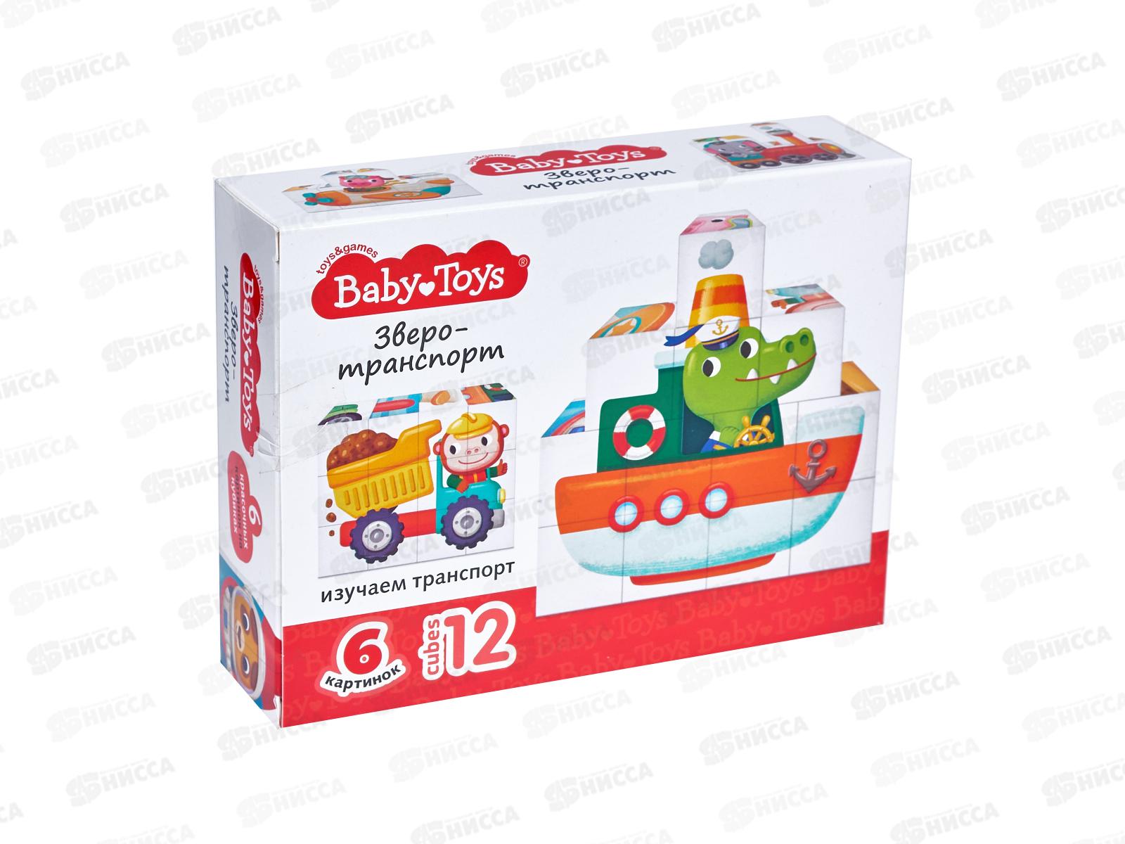 Кубики "Зверотранспорт" 12шт, 05882 Baby Toys