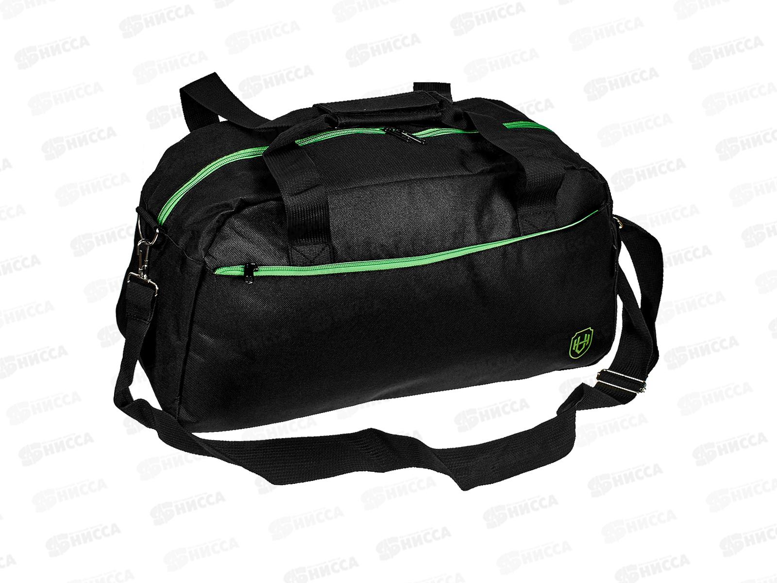 Сумка тканевая спортивная, с ремнем, черная с зелен. 45*25*17, СМ-2022