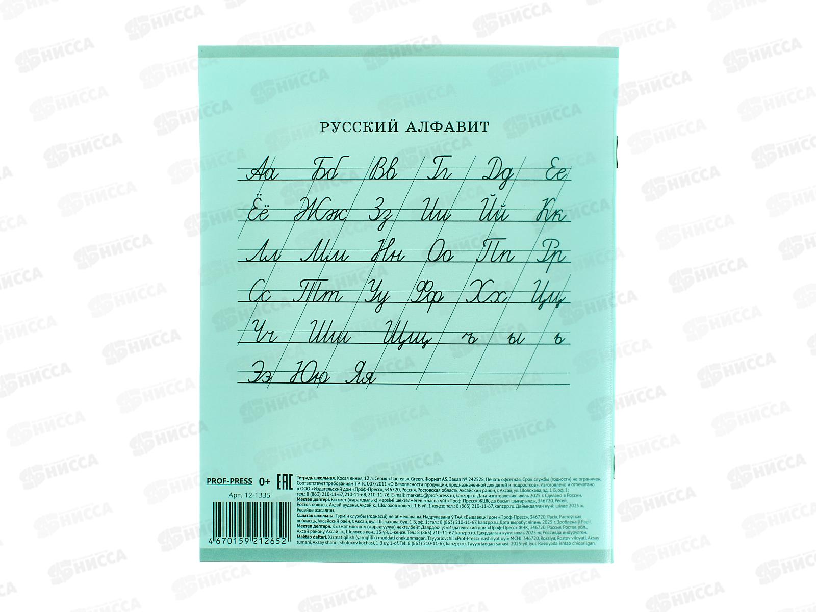 Тетрадь 12л косая линия ПП Пастель GREEN, 12-1335 *10/240