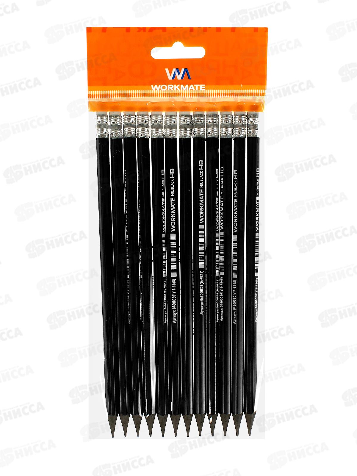 Карандаш ч/г с ласт. Workmate HB пласт, черн. корп, 14-9848 *12/2880