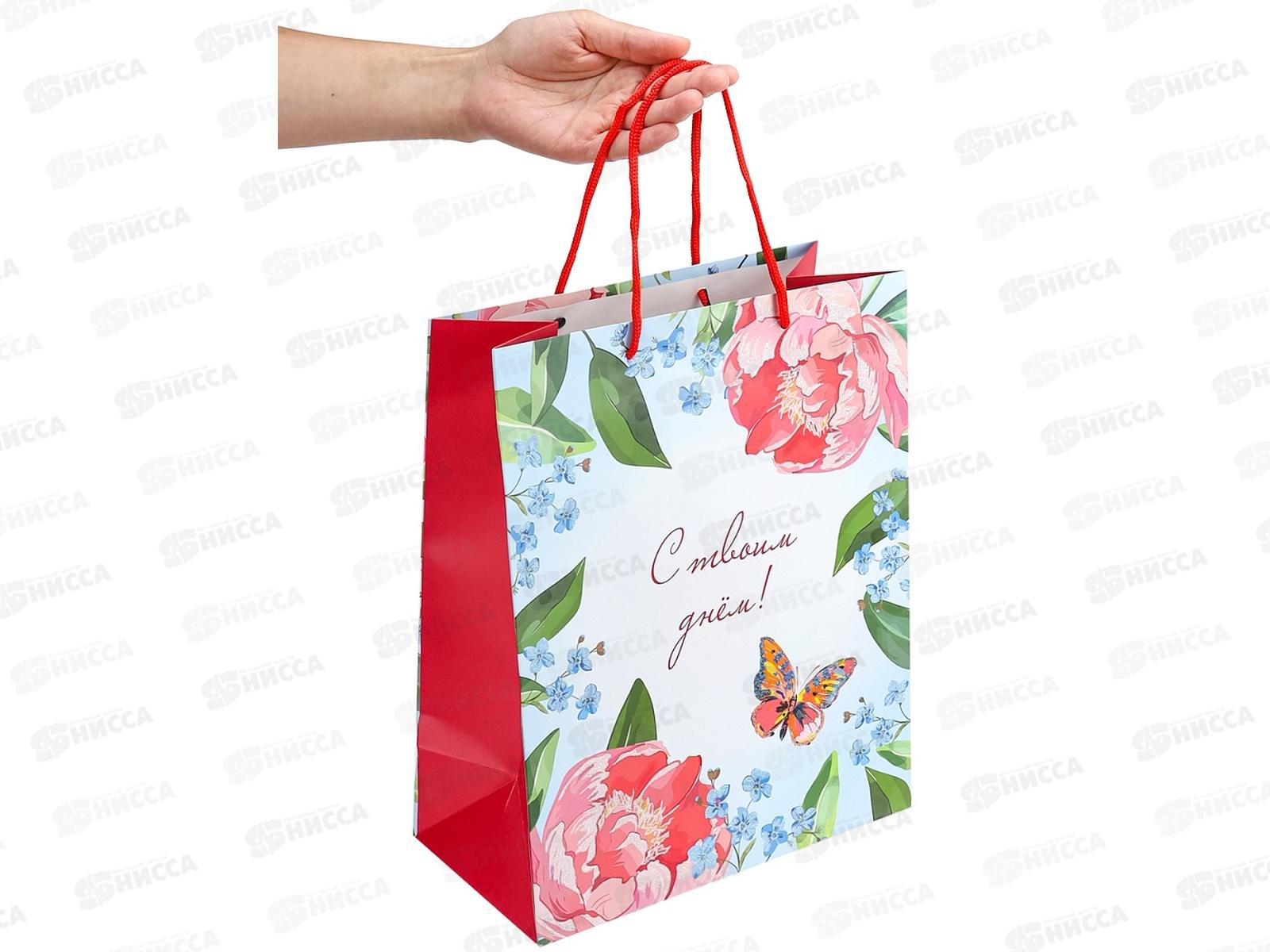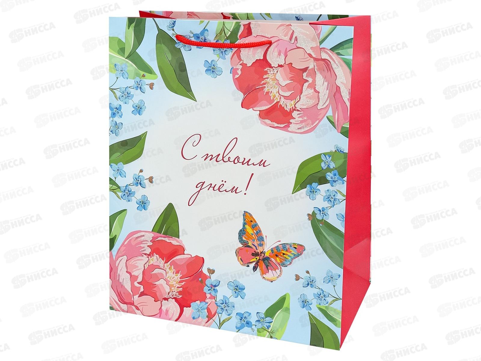 Пакет подарочный MI 26,4х32,7х13,6см Цветы и бабочка, ППК-2765 *12