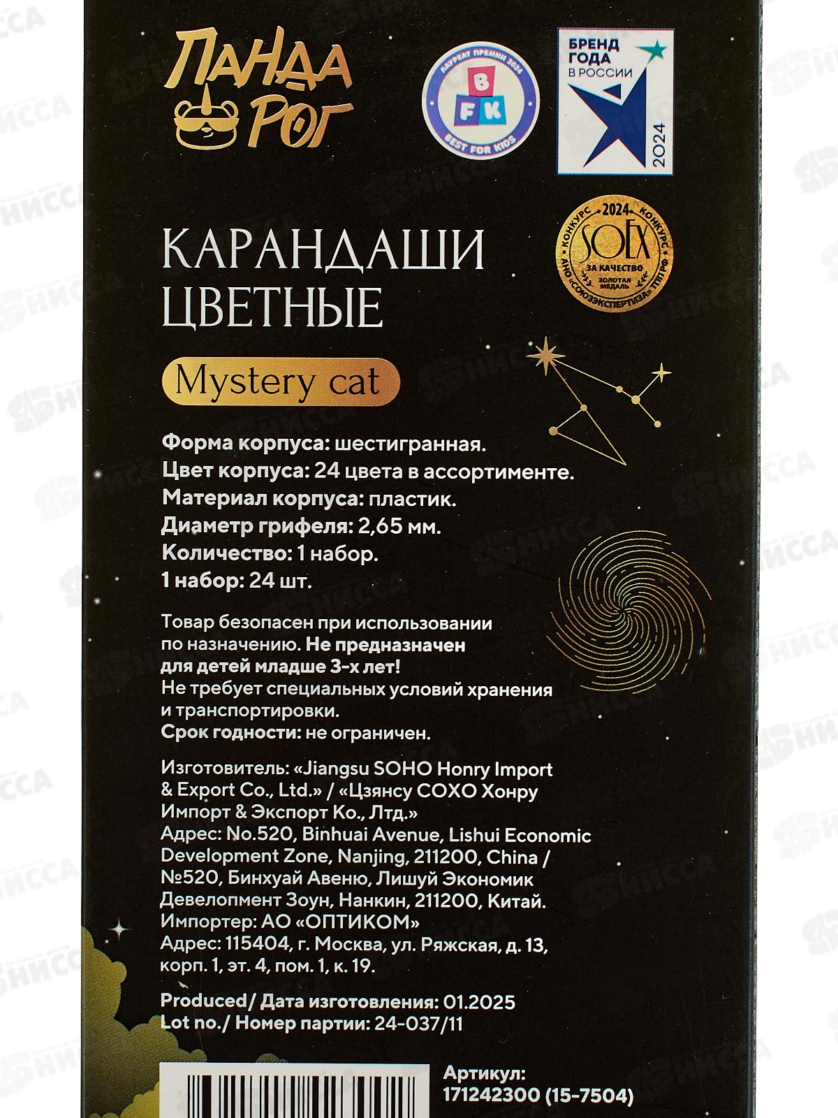 Карандаши 24цв ПандаРог "Mystery cat" пластик, 15-7504 *6/120