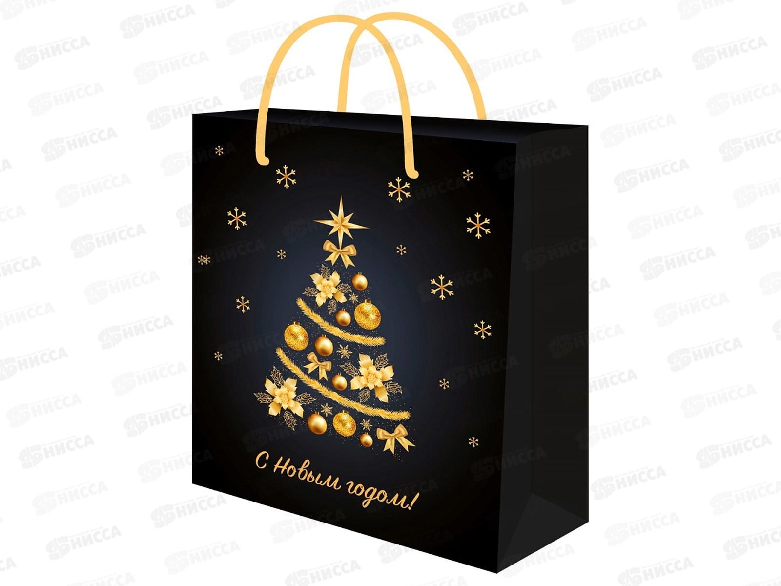 Пакет подарочный MI 26,4х32,7х13,6см (L) Золотистая елка ППК-2347 *12