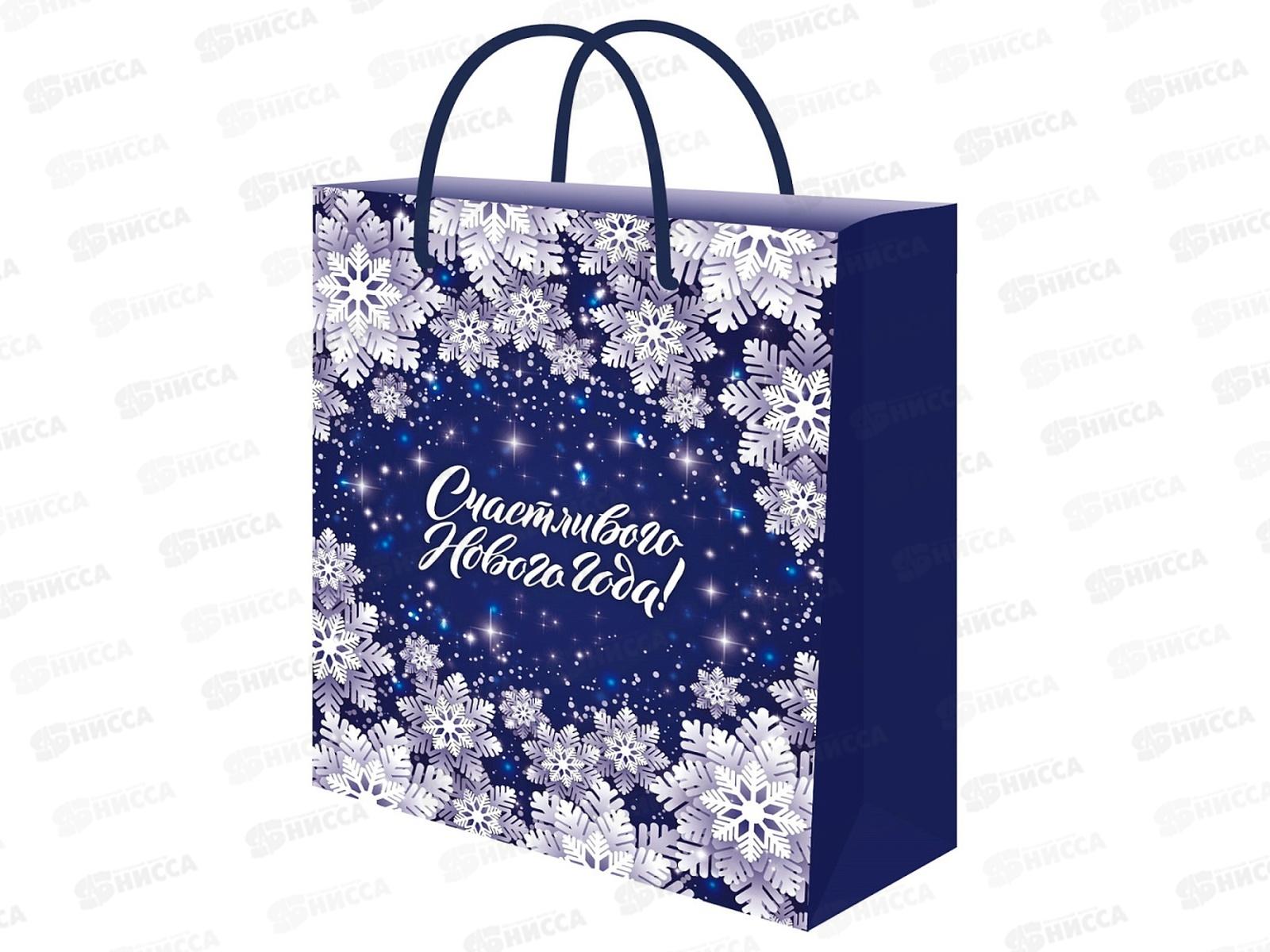 Пакет подарочный MI 26,4х32,7х8см (L) Синий новогодний ППК-2356*12