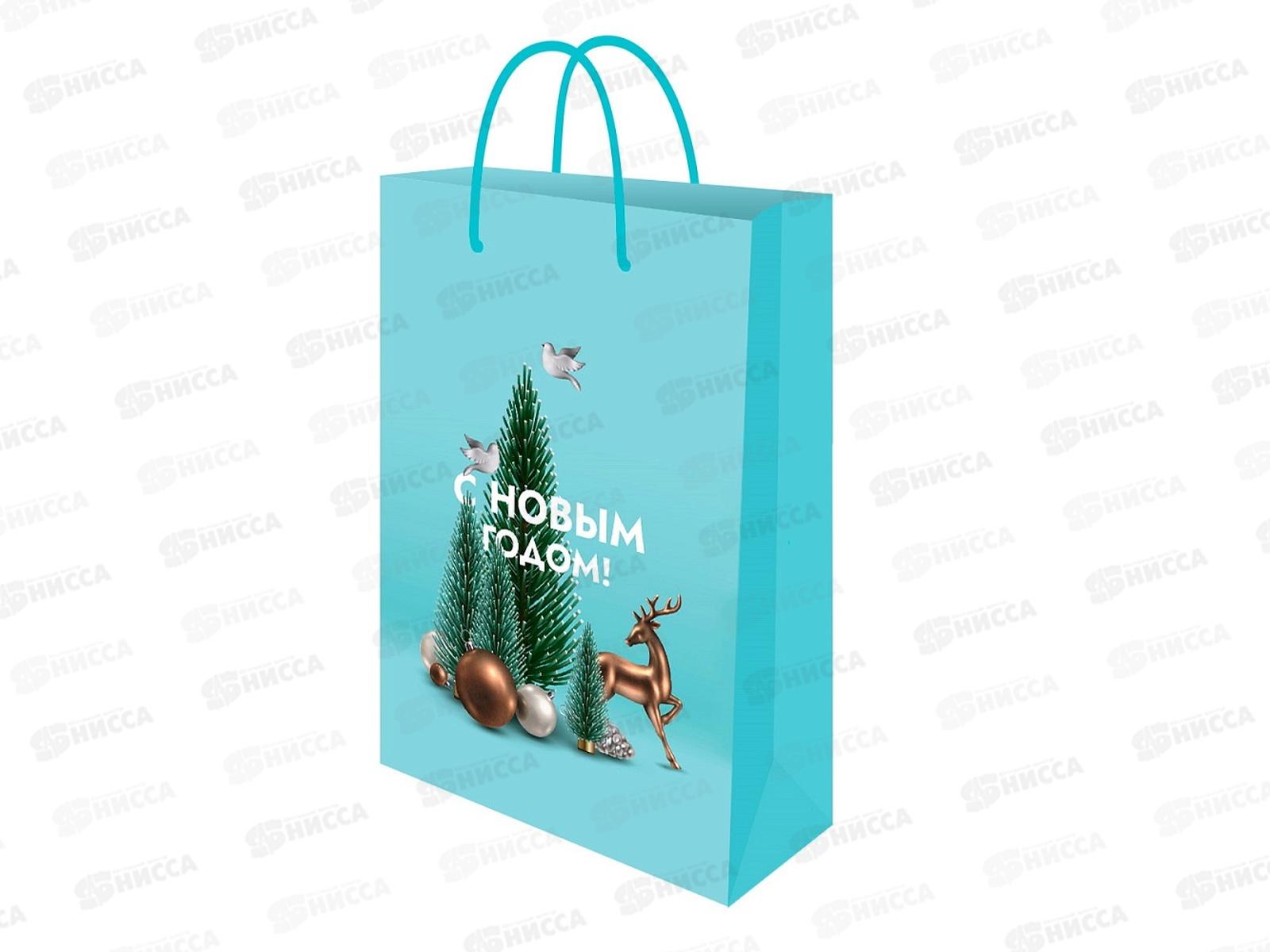 Пакет подарочный MI 14х20х6,5см (MS) Бирюзовый с елкой,128,ППК-2283*12