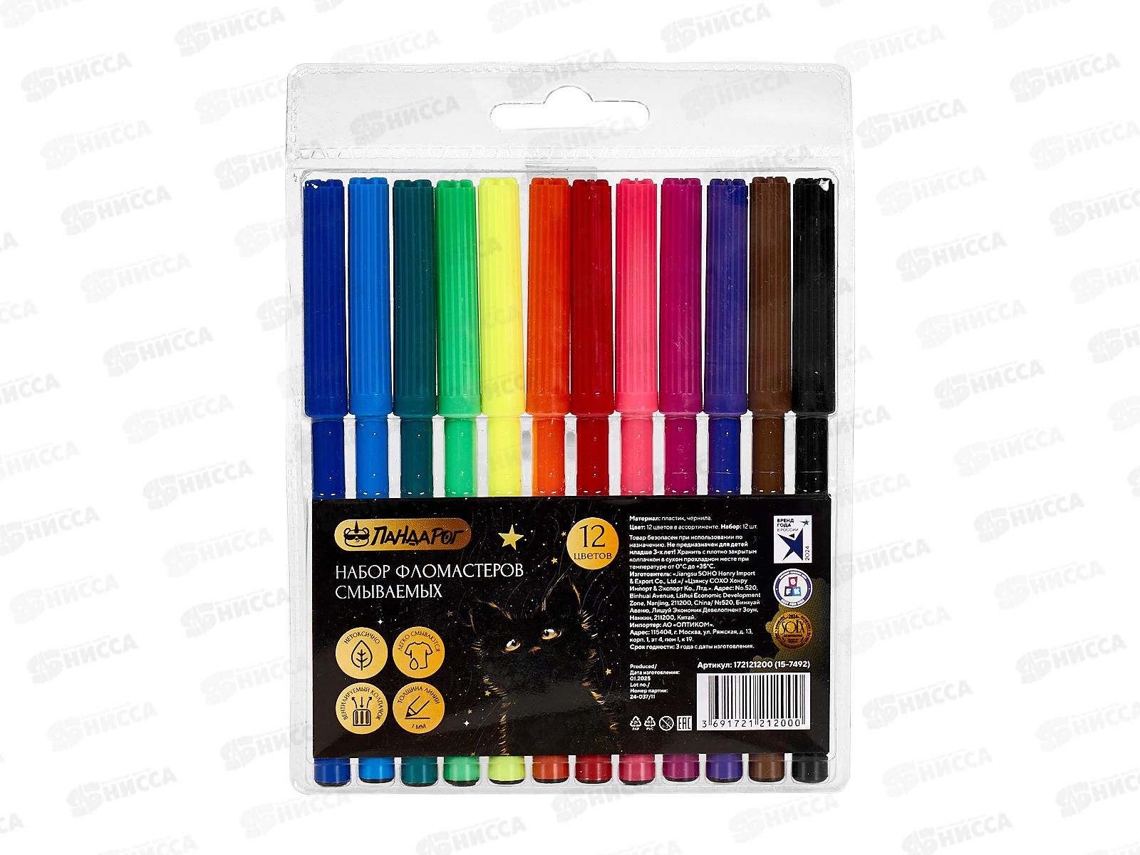 Фломастеры 12цв. ПандаРог "Mystery Cat" смываемые, 15-7492 *24