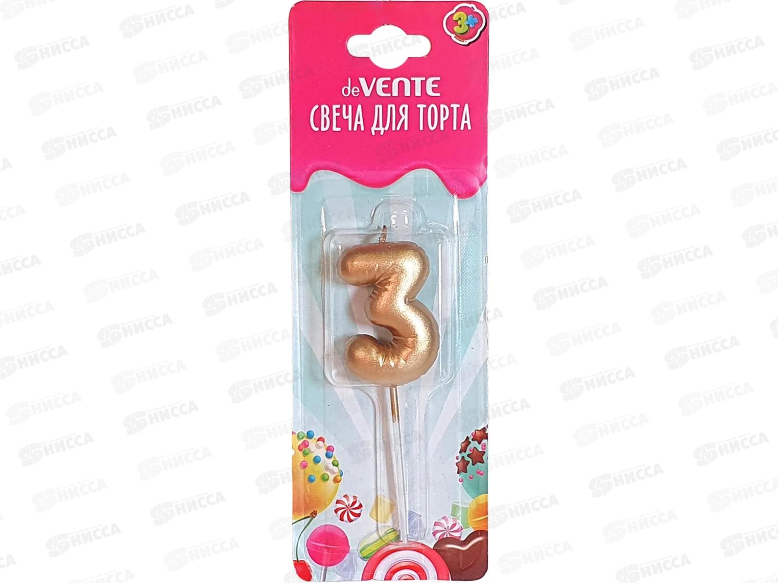 Свеча-цифра д/торта deVENTE "Воздушный шарик 3" золотистый 9060006 *12