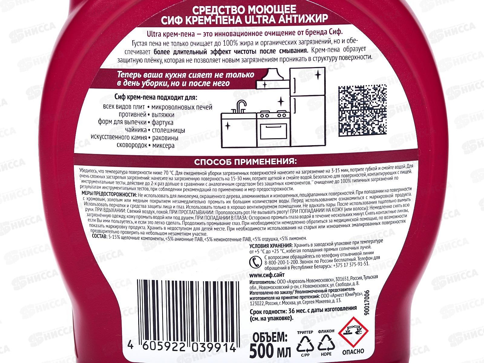 СИФ Спрей 500мл Антижир и Защита для кухни крем-пена
