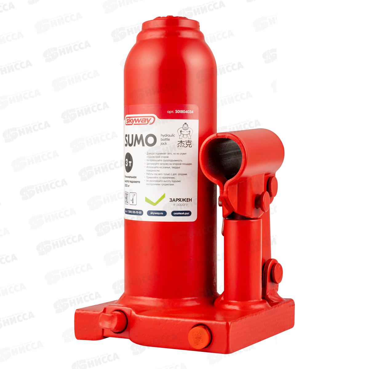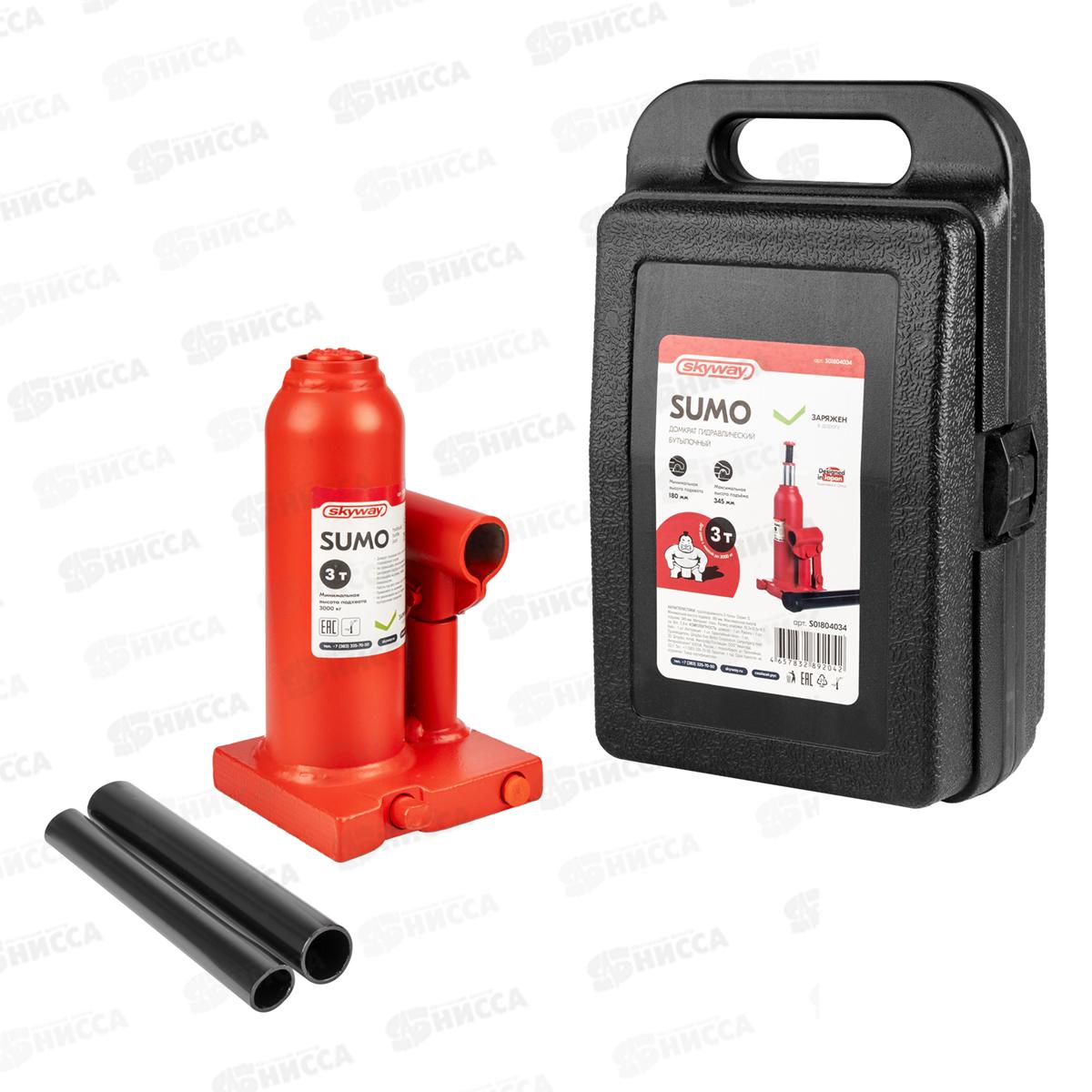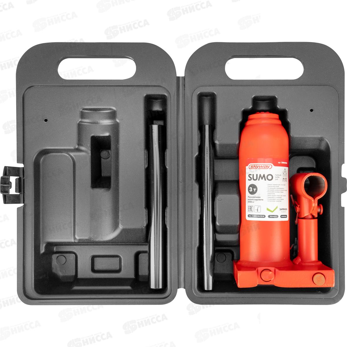 Домкрат гидравлический бутылочный SUMO 3т h 180-345мм в кейсе