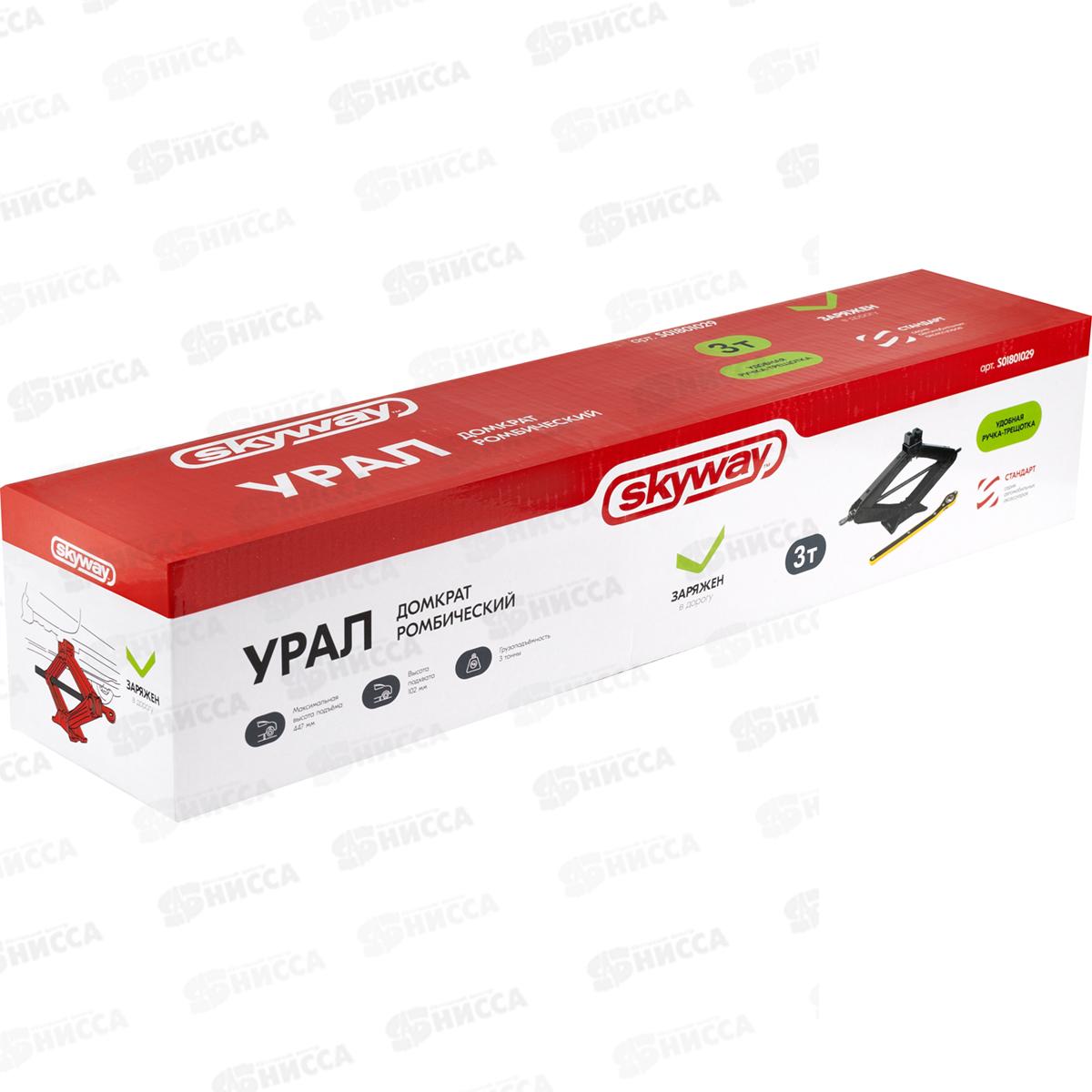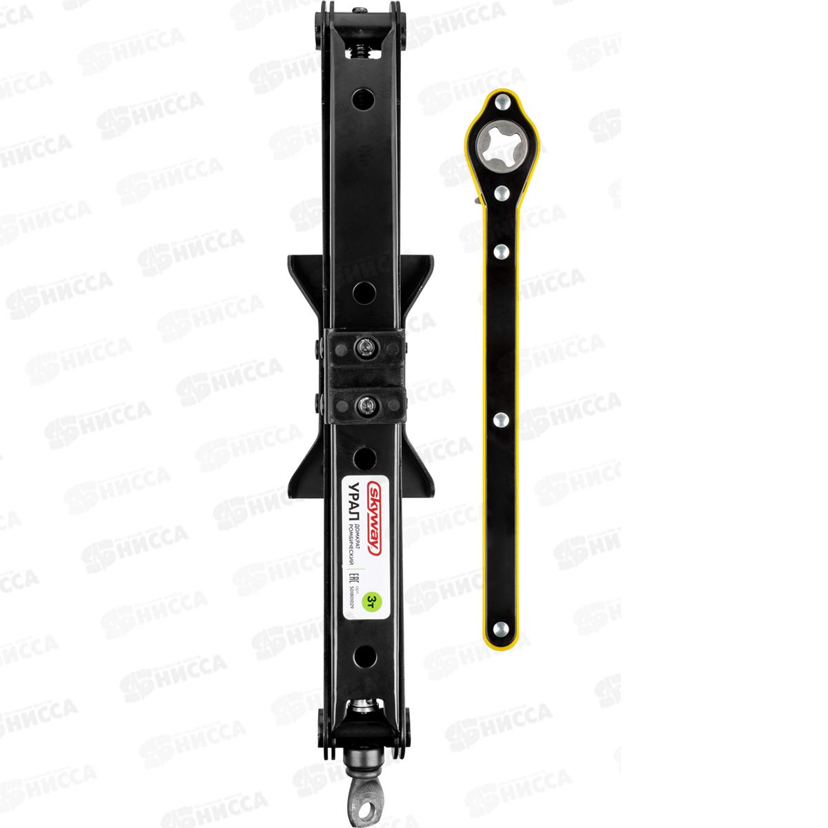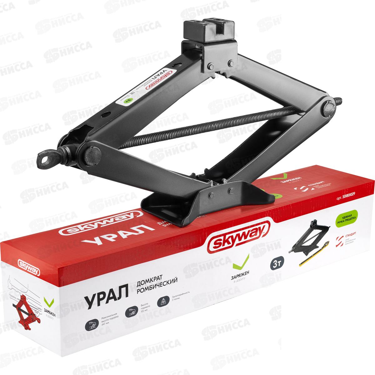 Домкрат механический ромбический 3т h 102-447мм УРАЛ с резиновой опорной частью с трещоткой