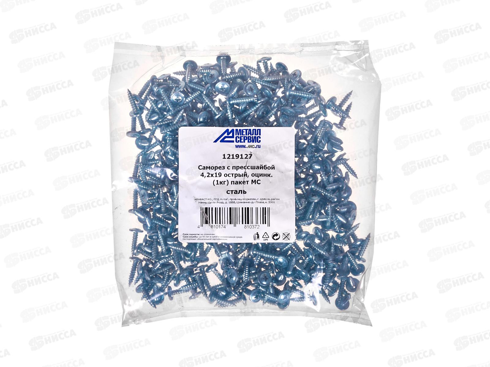 Саморез с прессшайбой 4.2*19 (1кг) острый, пакет *10