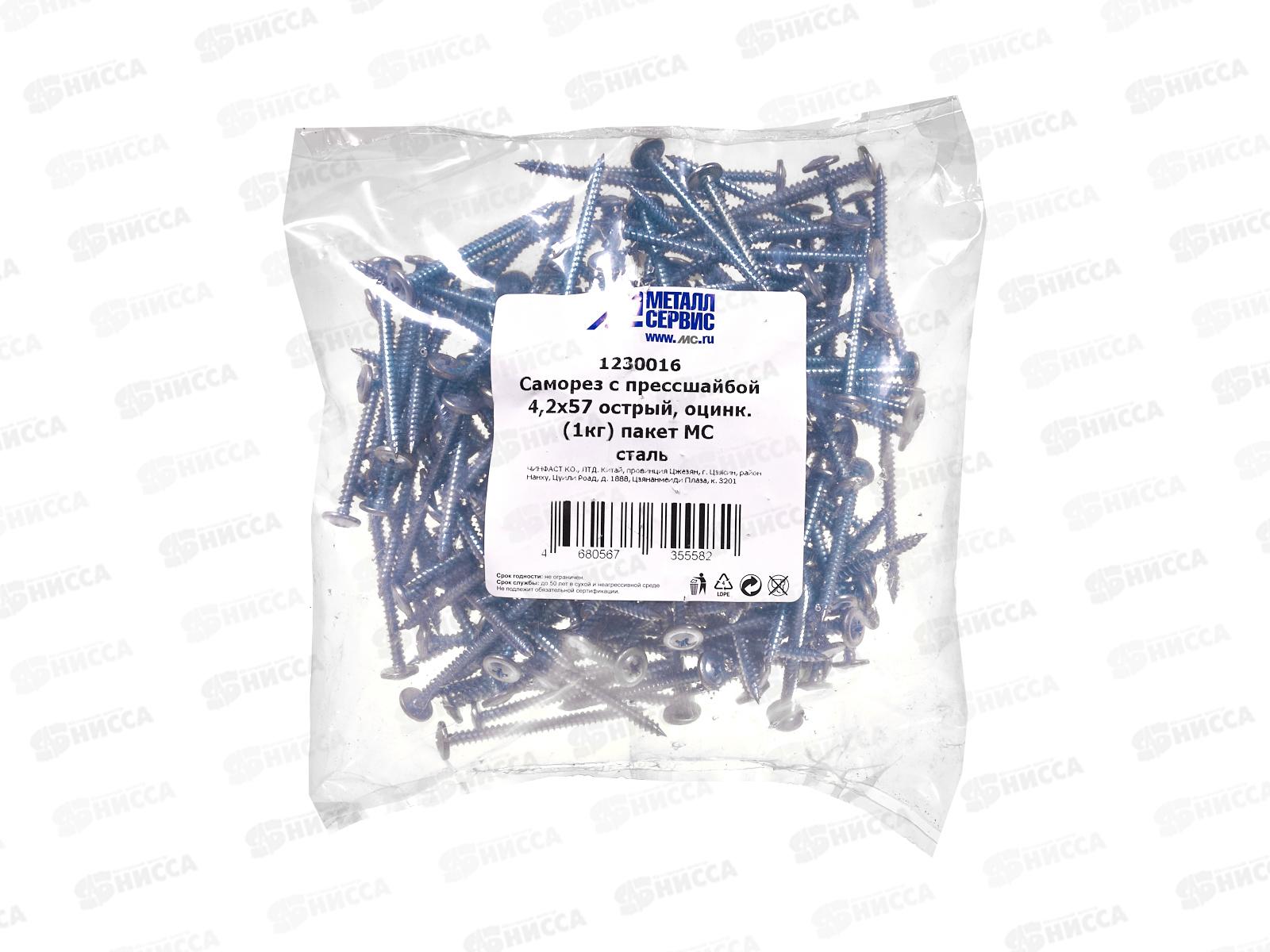 Саморез с прессшайбой 4.2*57 (1кг) острый, пакет *10