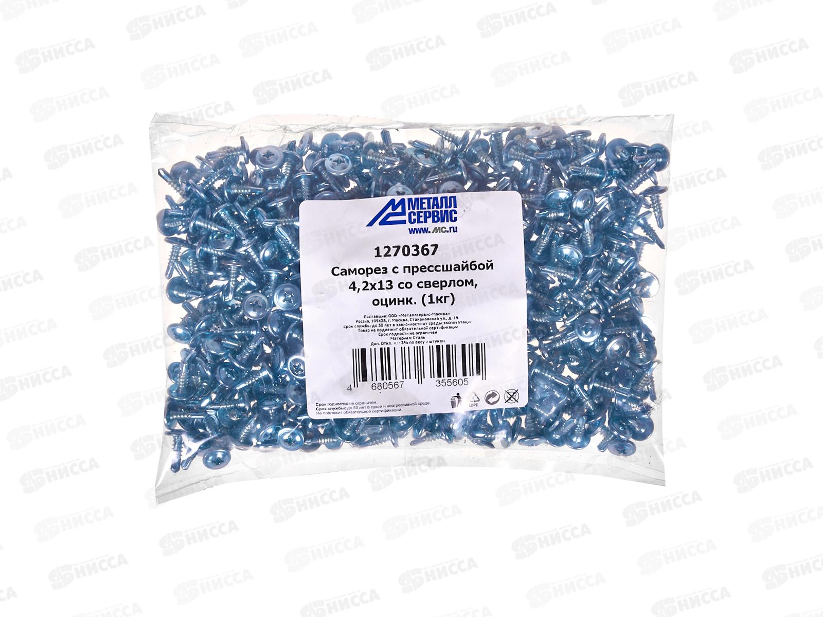 Саморез с прессшайбой 4.2*13 (1кг) со сверлом, пакет *10