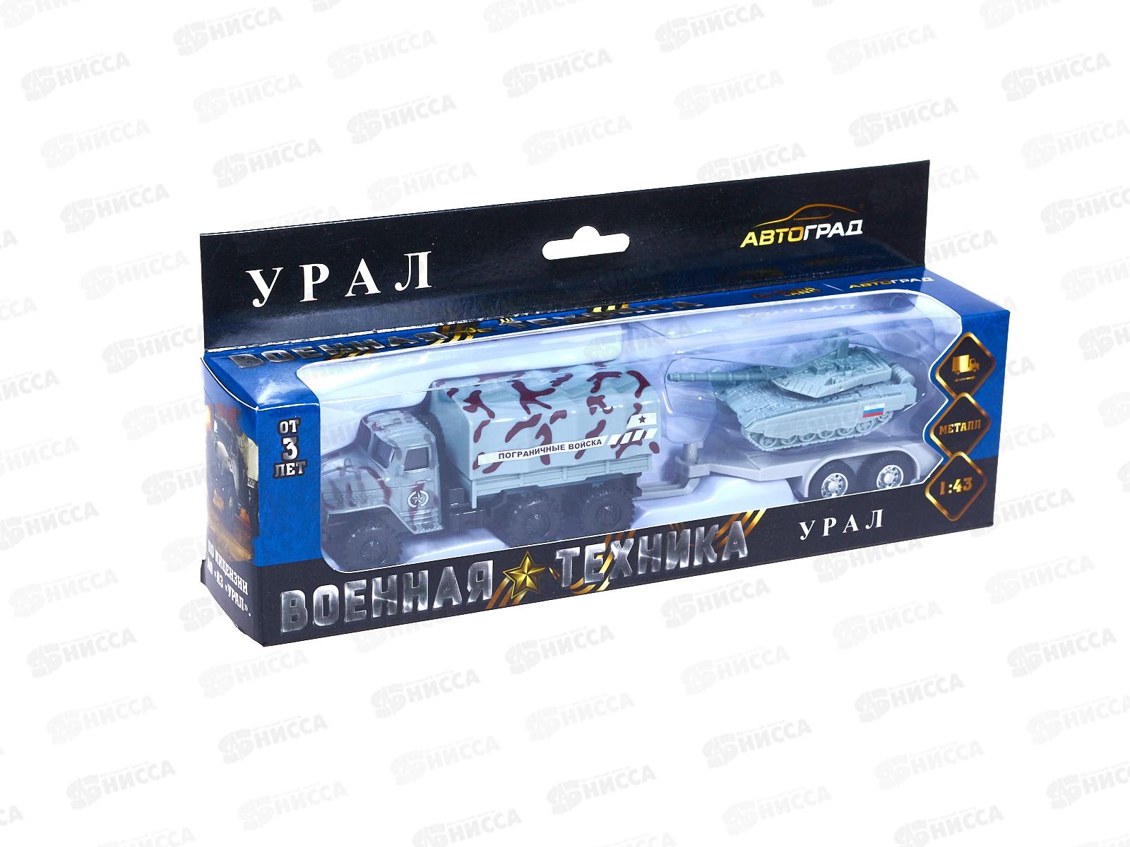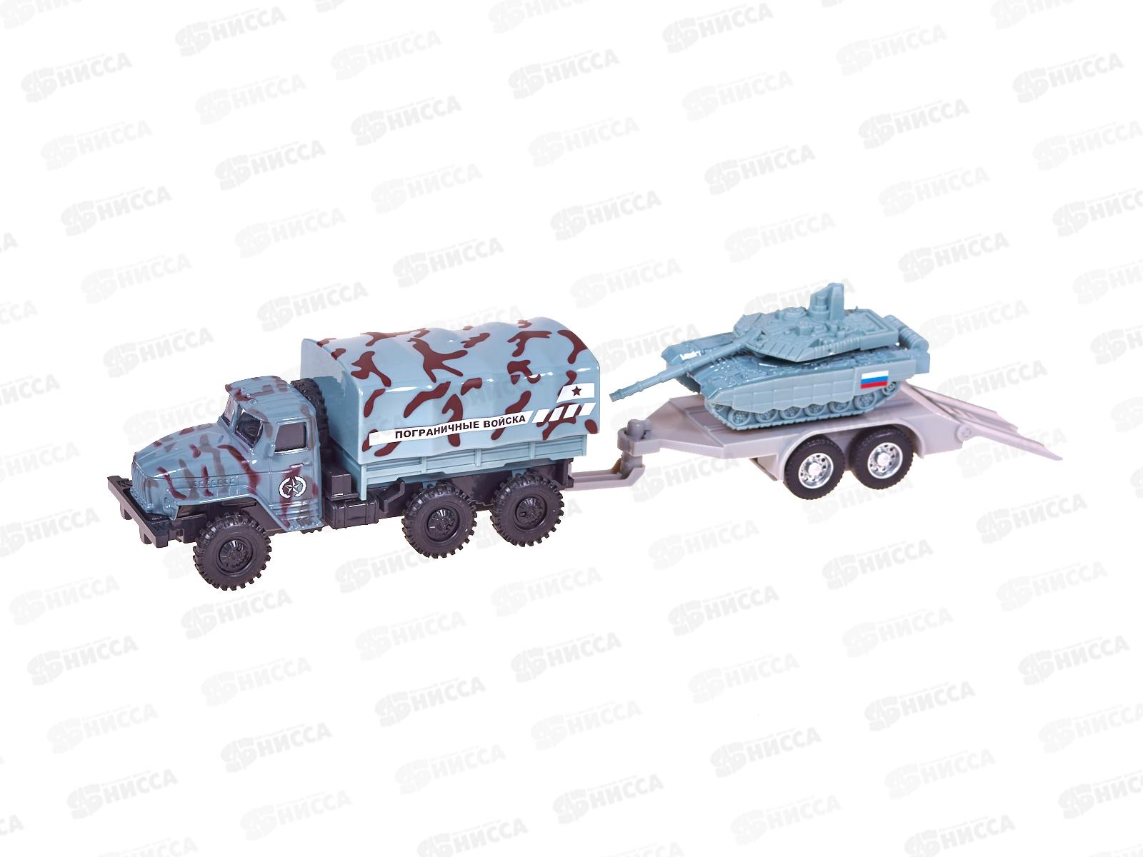 Грузовик металлический УРАЛ Армия с прицепом, инерц., 1:43, зеленый, 9123792