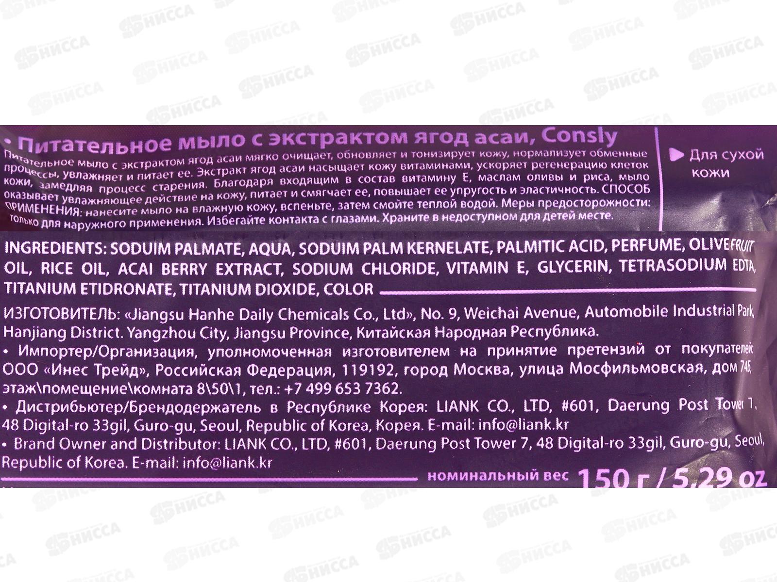 Consly Мыло питательное с экстрактом ягод асаи 150г