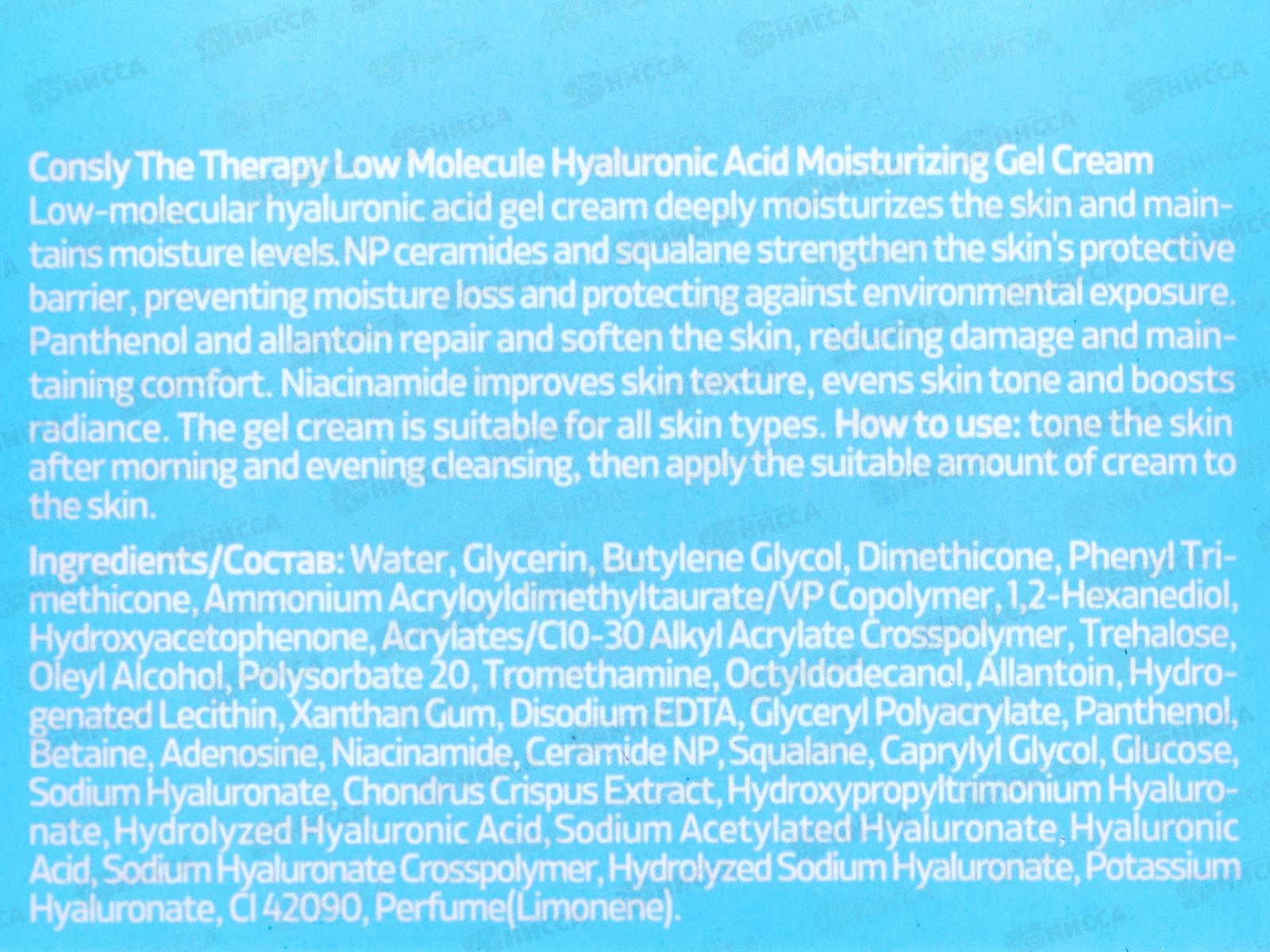 Consly Крем-гель увлажняющий с низкомол гиалуроновой кислотой 50мл