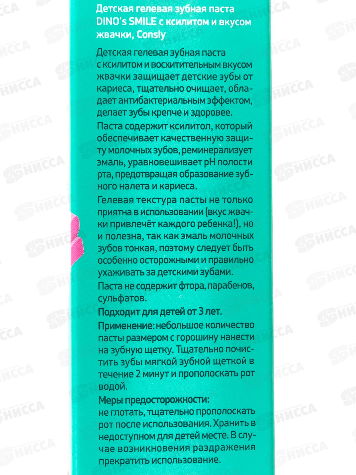 Consly Зубная паста гель Dino`s Smile детс с ксилитом и вкус жевач 60г