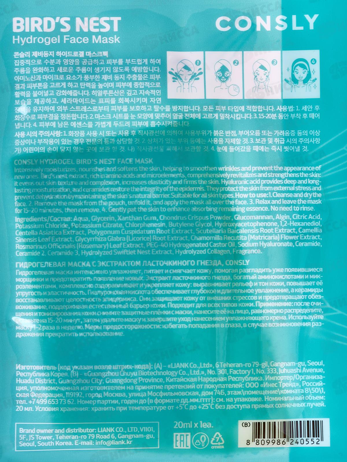 Consly Маска гидрогелевая с экстрактом ласточкиного гнезда 20мл