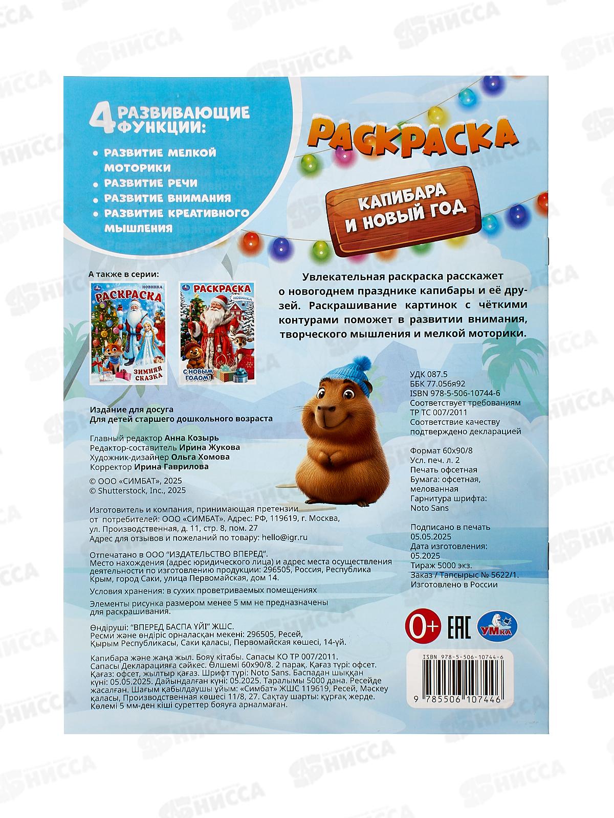Раскраска "УМКА" 10744-6, Капибара и Новый год, 210х290, 16стр. *50