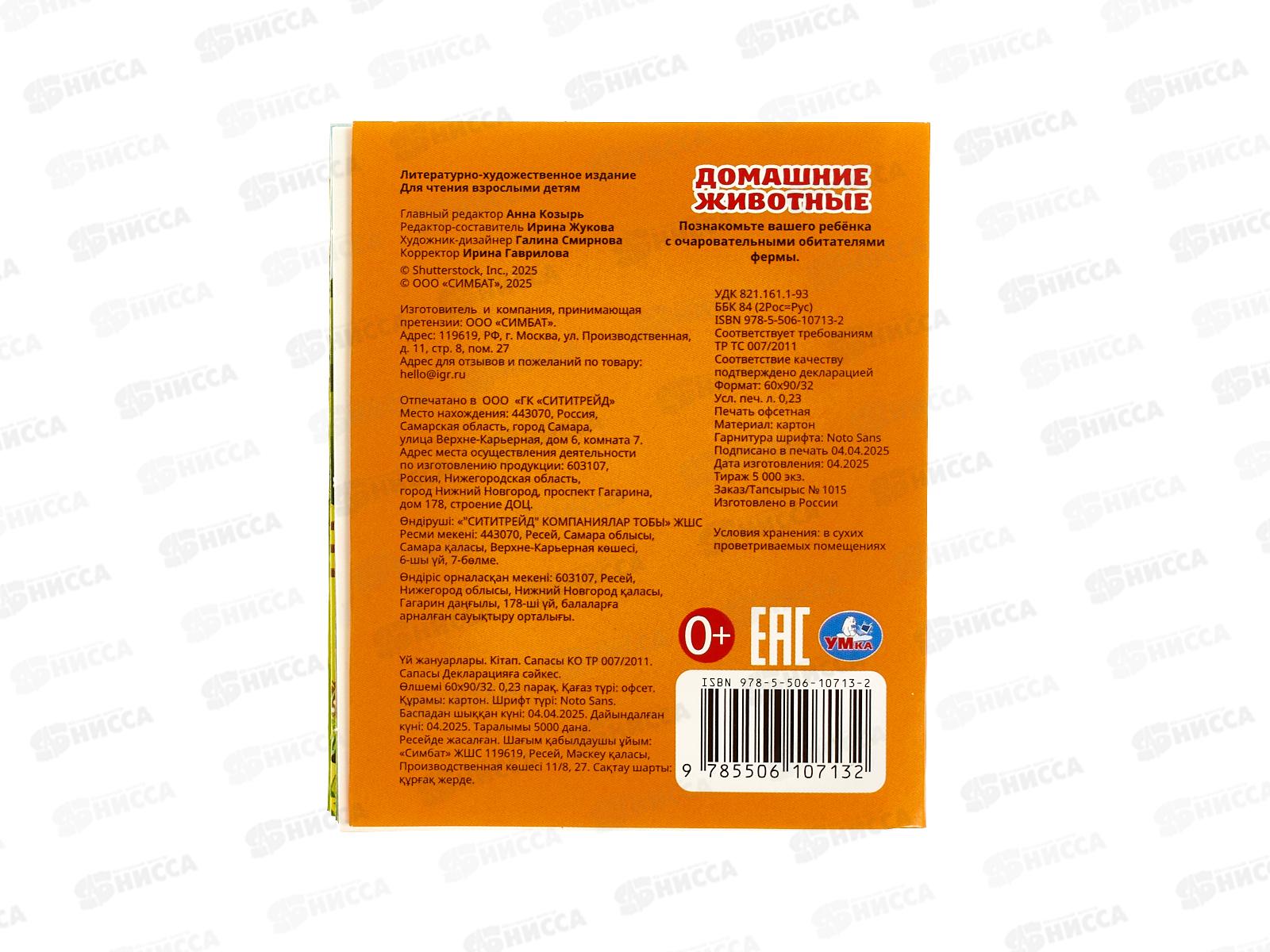 Книга 10713-2 Умка: Домашние животные (кн.-малышка) 8стр. 65*83мм