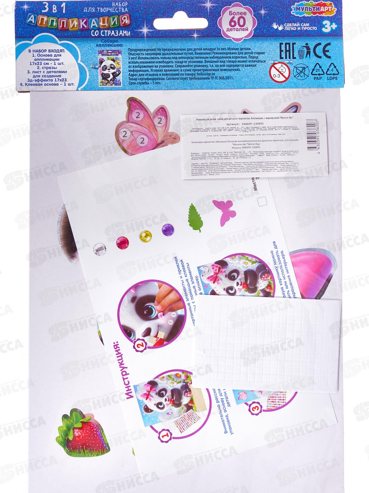 Аппликация 3 в 1 "Панда" картон, эва, стразы, Мульти АРТ, 130405