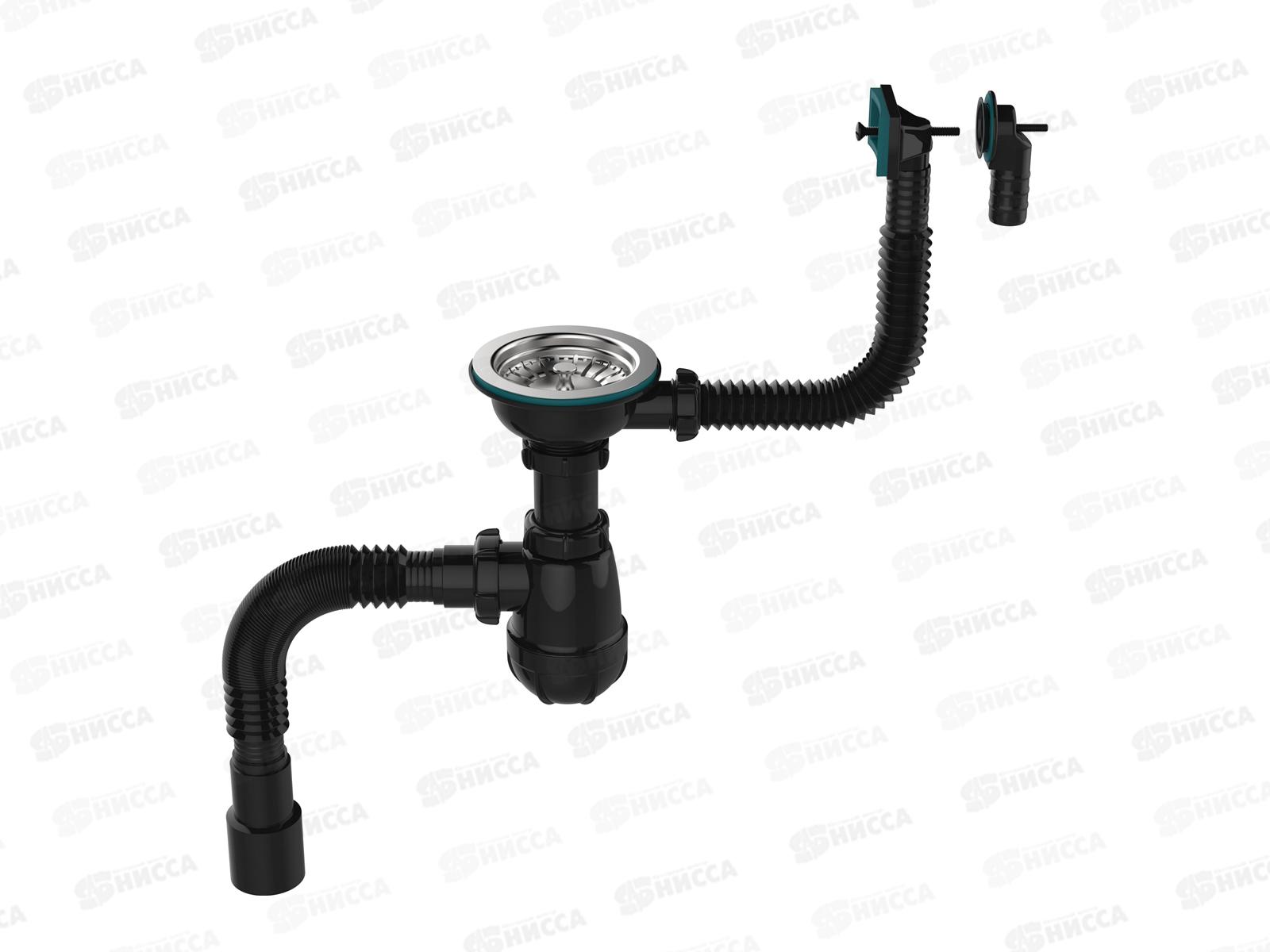 Сифон бутылочного типа от бренда Aquant, подходит для кухонных моек с диаметром сливного отверстия 90-98 мм. Выпуск 3 1/2", разборный, с металлической решеткой 115 мм и ситечком 78 мм в комплекте с двумя переливами, круглым и прямоугольным. Корпус сифона увеличенный, для достижения максимальной проточности и поддержания оптимального уровня гидрозатвора с высотой 55мм. В комплекте с гофротрубой для подключения к канализации с универсальным выходом под два диаметра 40/50мм. Сифон прост в установке, позволяет прочистить его в случае засорения без демонтажа и способен улавливать мелкие предметы, например, кольца или серьги.