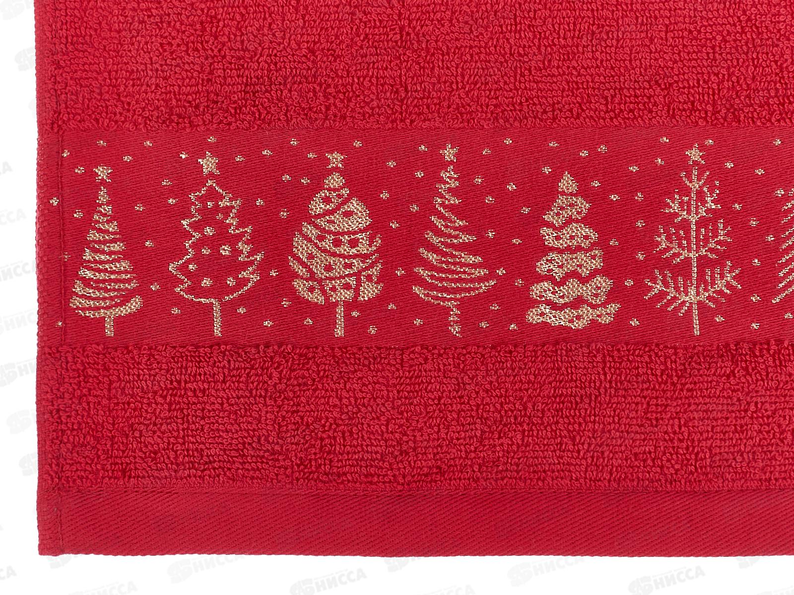 Полотенце махровое 30*60 +/- 2см Елки 04-063 красный