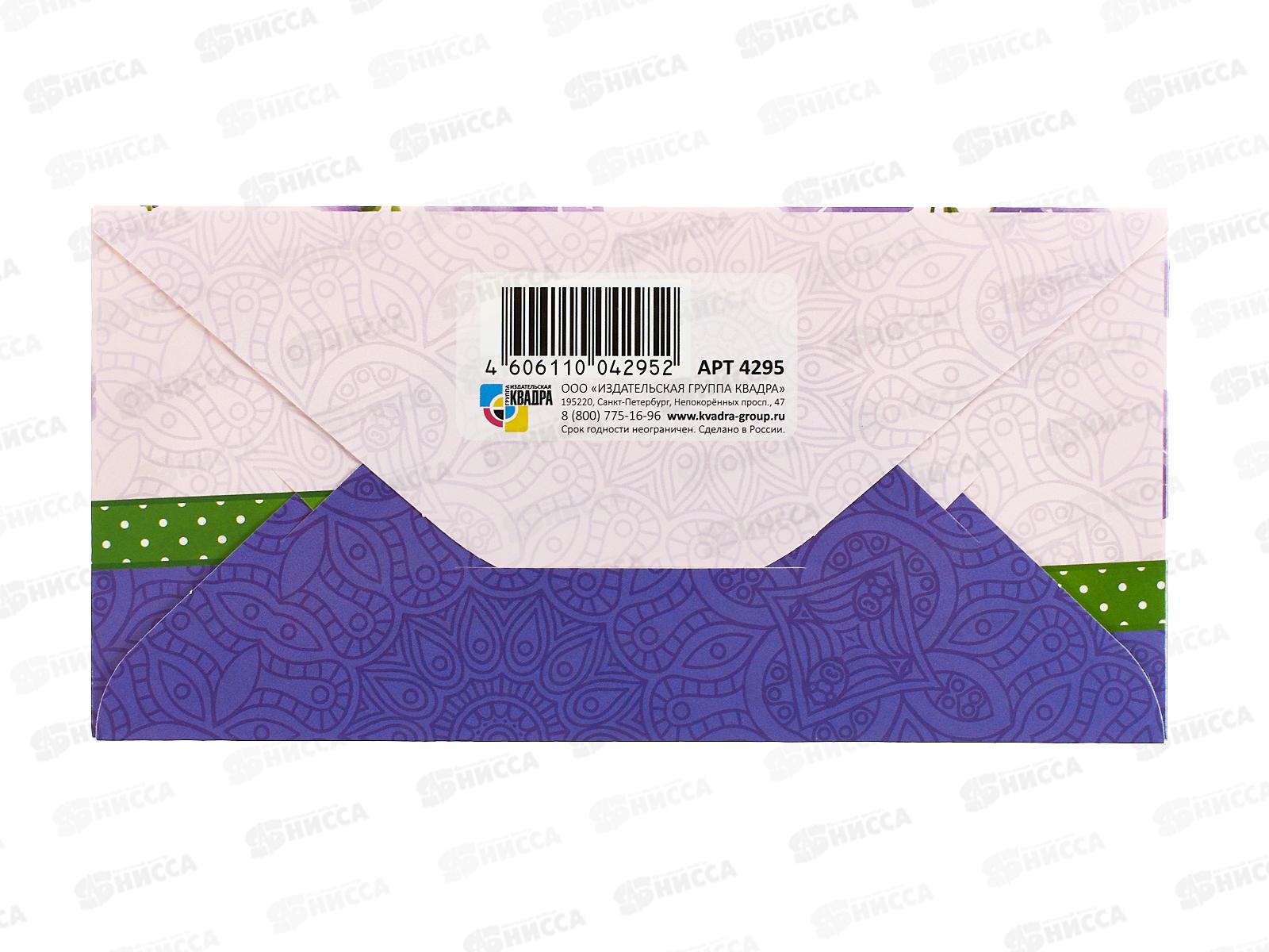 Характеристики: Торговая марка: Квадра Артикул: 4295 Серия: Эконом Тип товара: Конверт Вид: подарочный Назначение: для денег Надпись: без надписи Материал: картон Размер: 81х165 мм Декор: ВД-лак Плотность картона: 220 г/кв.м