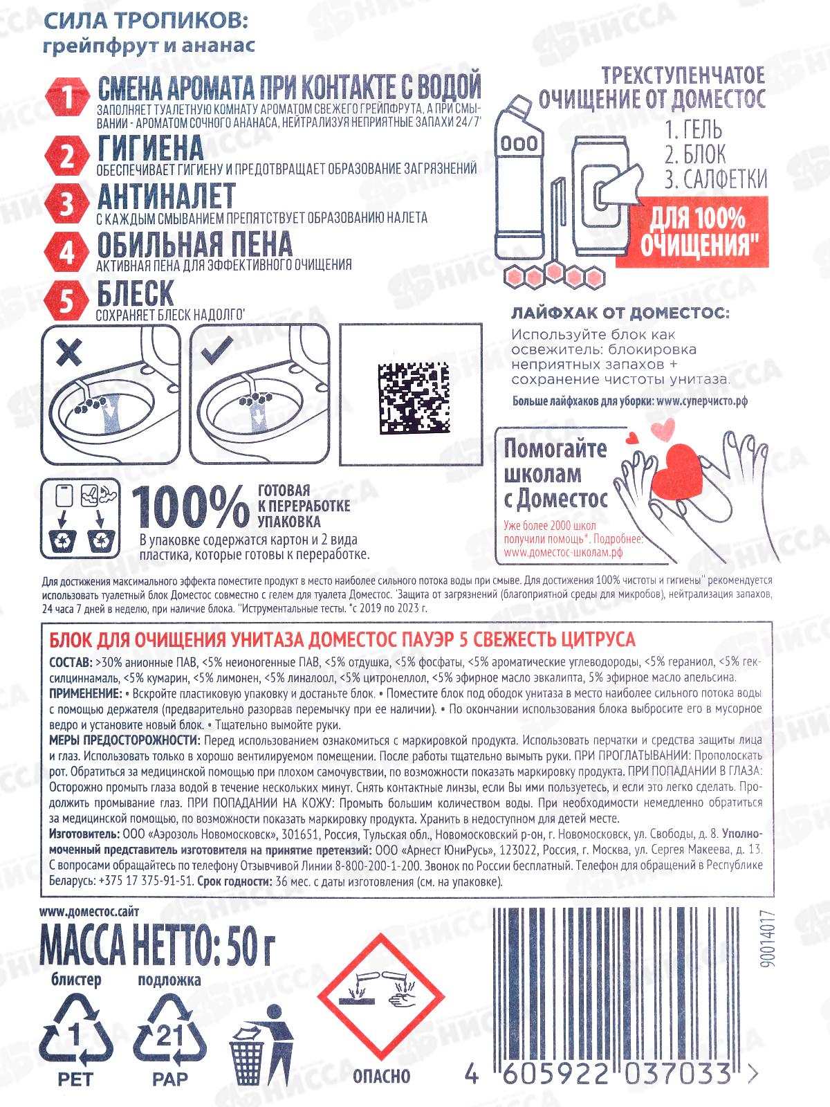 ДОМЕСТОС блок для унитаза Power 5 Сила тропиков 50г