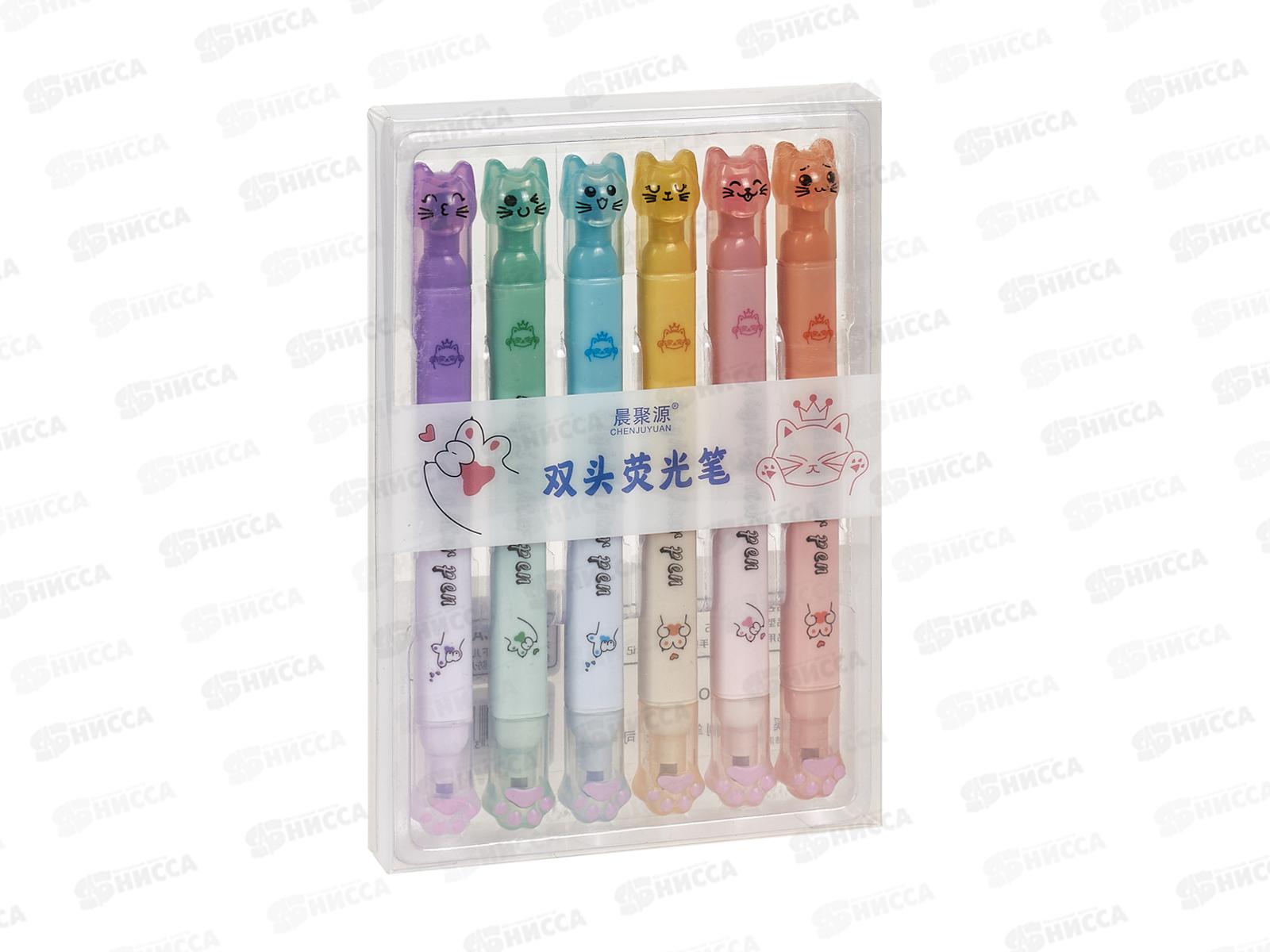 Набор маркеров-текстовыделителей 6в1,2-ст,2-цв Кот,лапки 21246-1