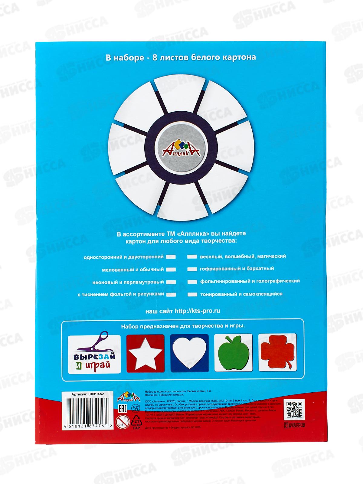 Картон Белый А4 Апплика 8л, Морские звезды С0019-52 *60