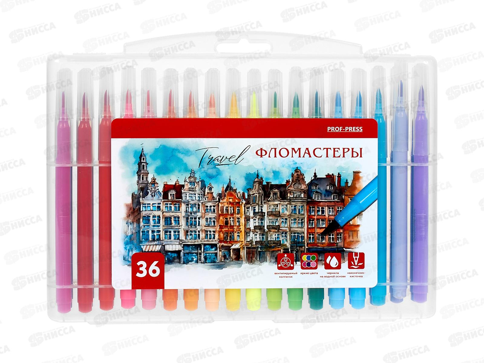 Фломастеры 36цв. ПП с кисточкой TRAVEL, ФЛ-8516, кейс *6/48
