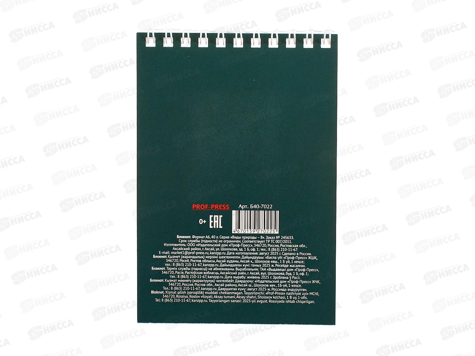 Блокнот ПП 40л А6 Виды природы - 8, ассорти, гребень, клетка, Б40-7022