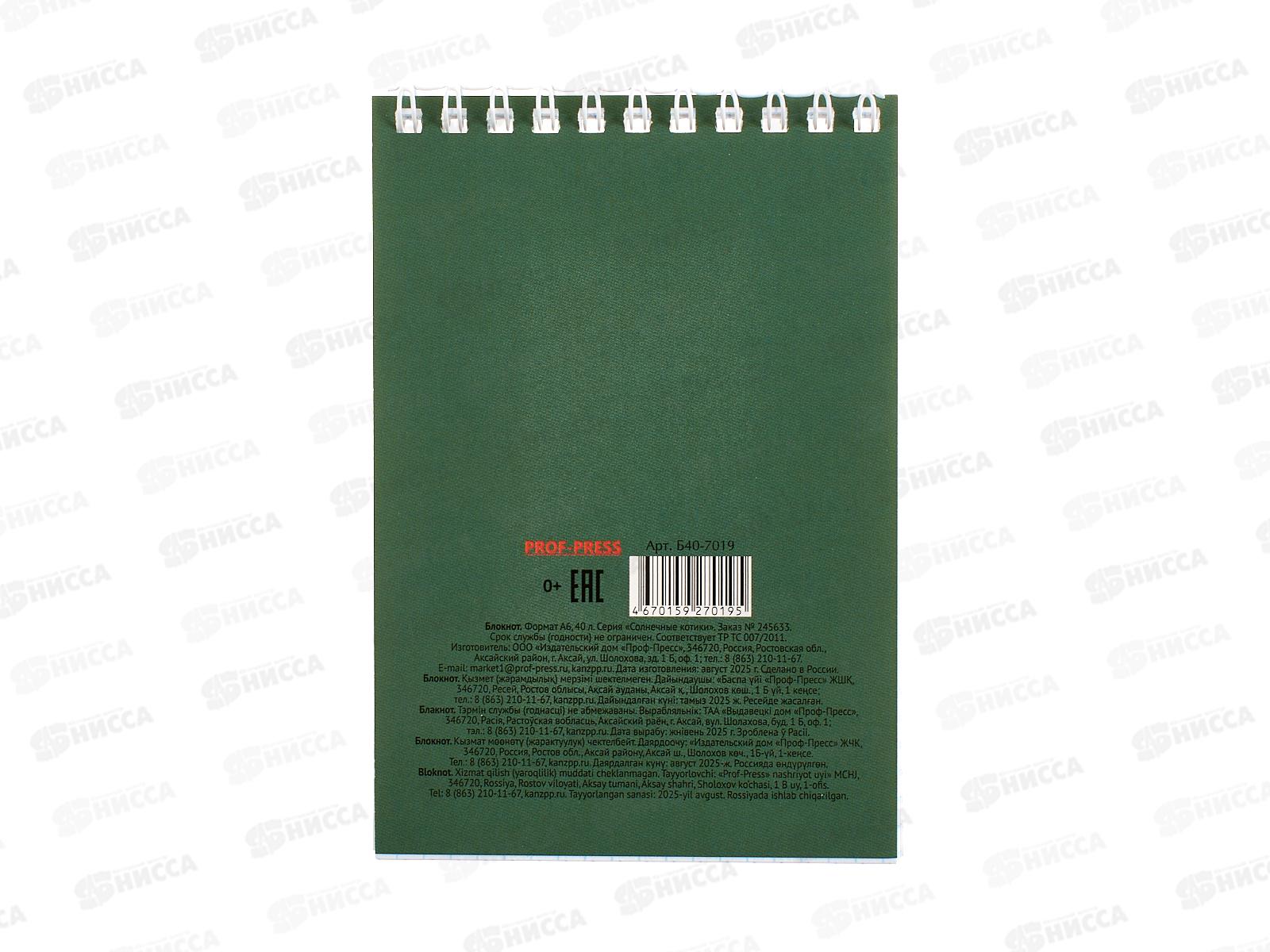 Блокнот ПП 40л А6 Солнечные котики, на гребне, клетка, Б40-7019