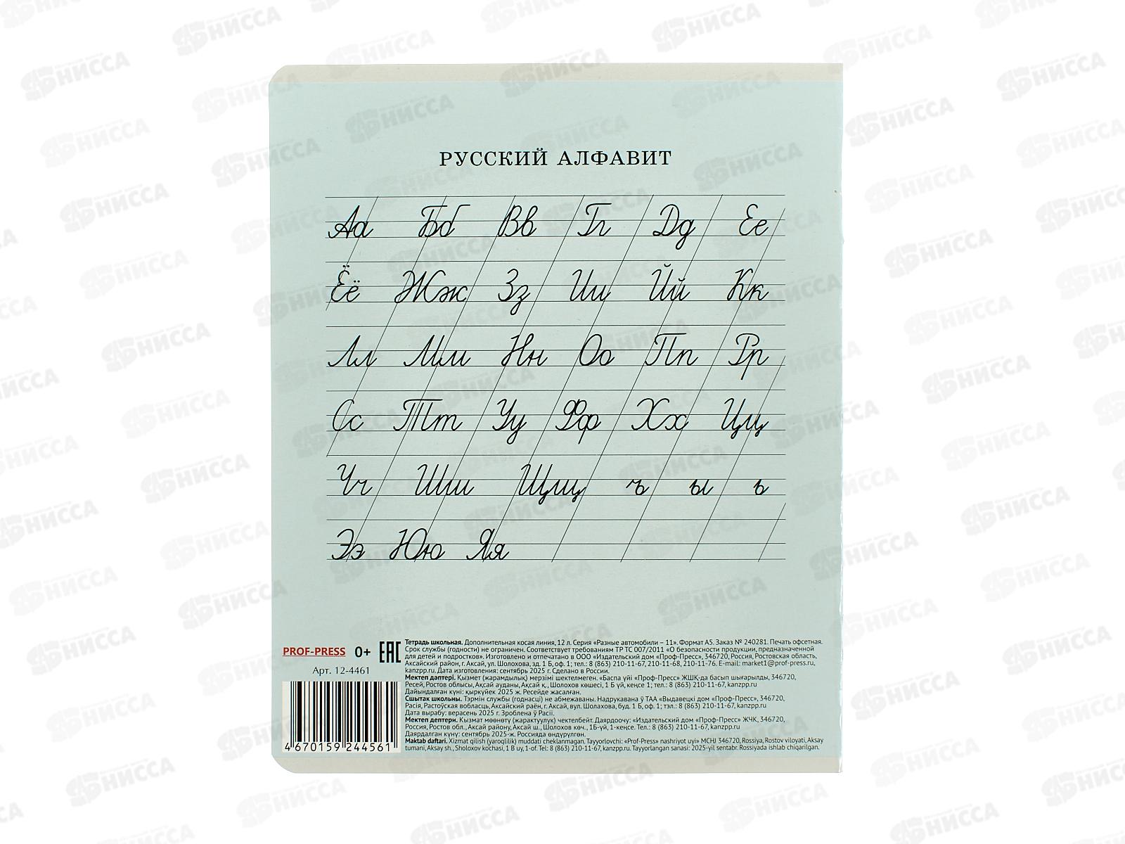 Тетрадь 12л доп. косая линия ПП Разные автомобили - 11, 5д, 12-4461 *20/160