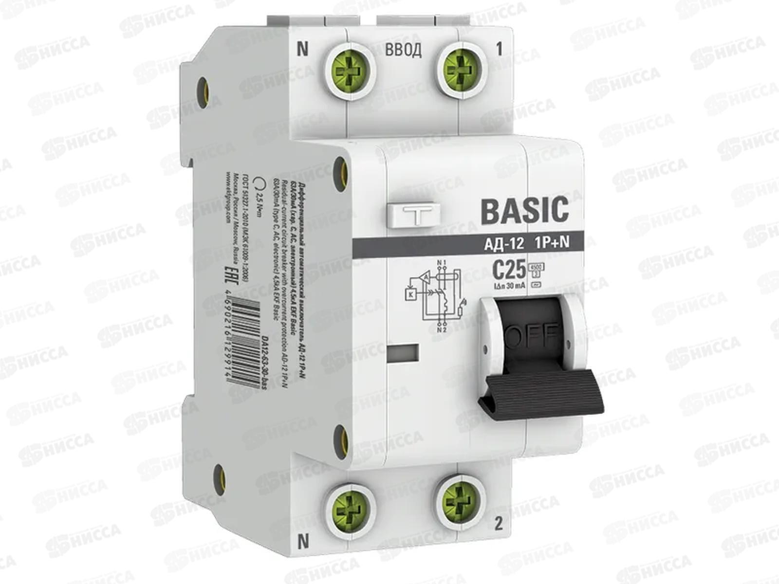 АВДТ АД-12 1P+N 25А 30мА тип AC (характеристика C) 4,5кА