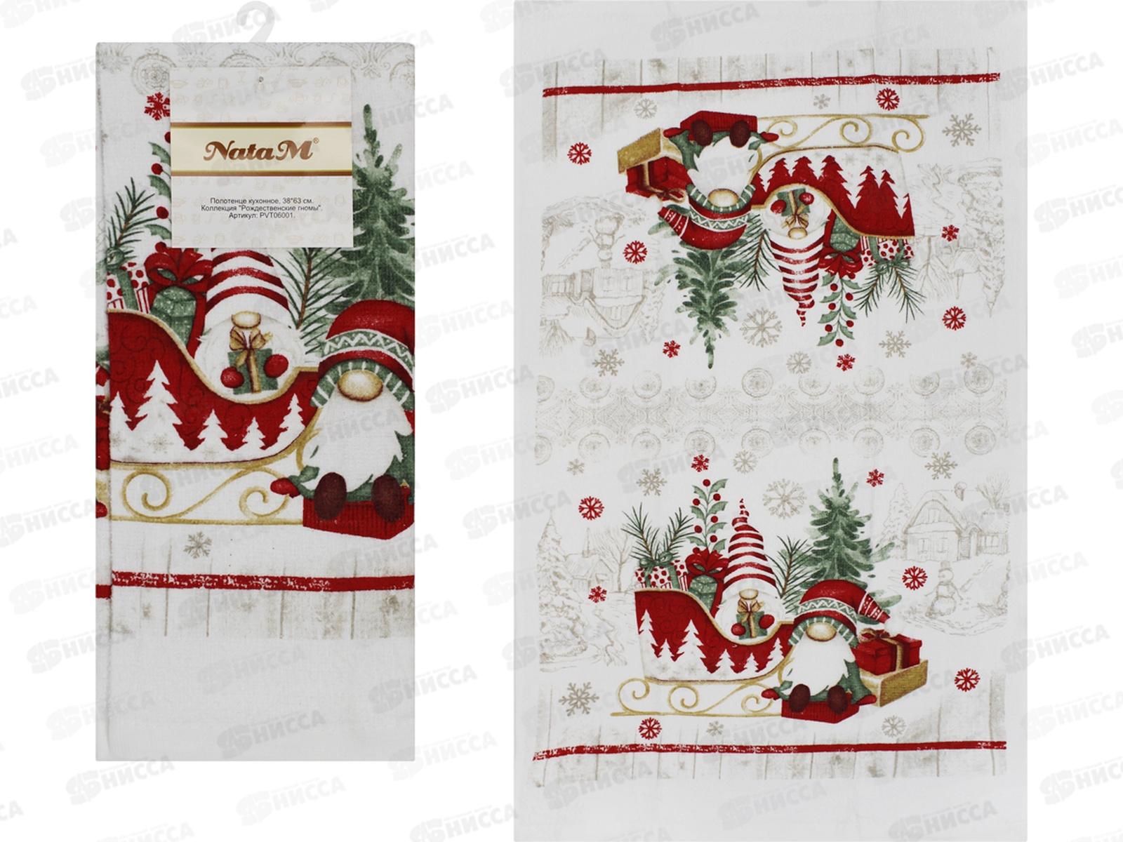 Полотенце кухонное махровое 38х63см "Рождественские гномы" хлопок, PVT06001 АТМ
