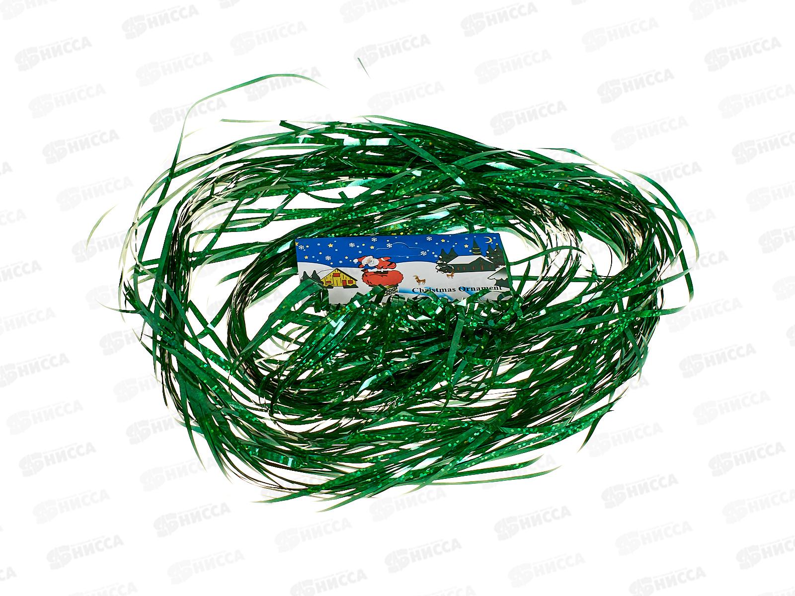 Дождь новогодний 1,5м голограмма тонкий, зеленый, AL-25014 *1200
