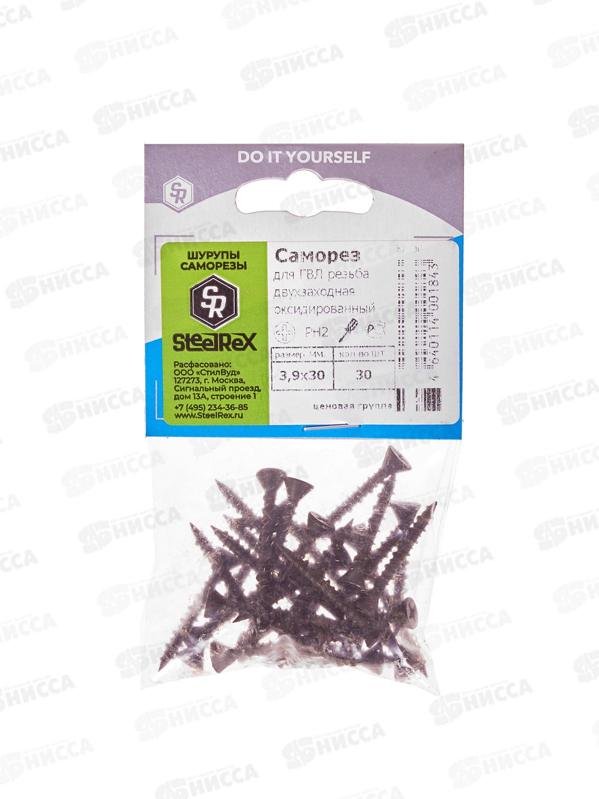 Саморез для ГВЛ двухзаходная резьба, оксид 3,9х30 30шт SR