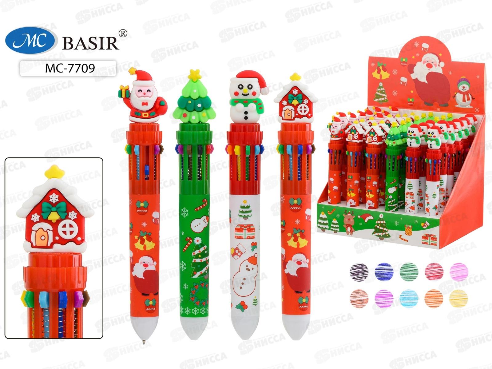 Ручка авт. BASIR 10-х цв. детская "Новогодние" ассорти МС-7709 *36