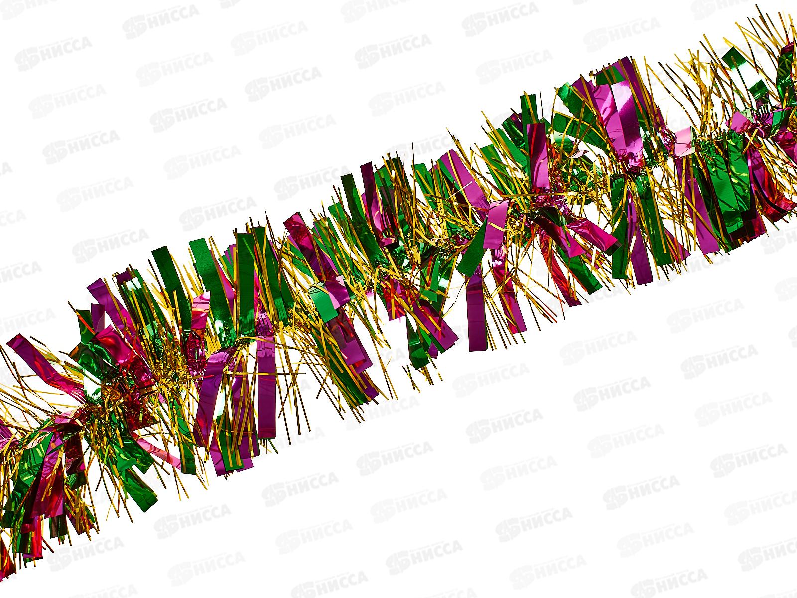 Мишура 002015 классика 11см х 2м. зеленый+фуксия+золото, AL-3355 *1200