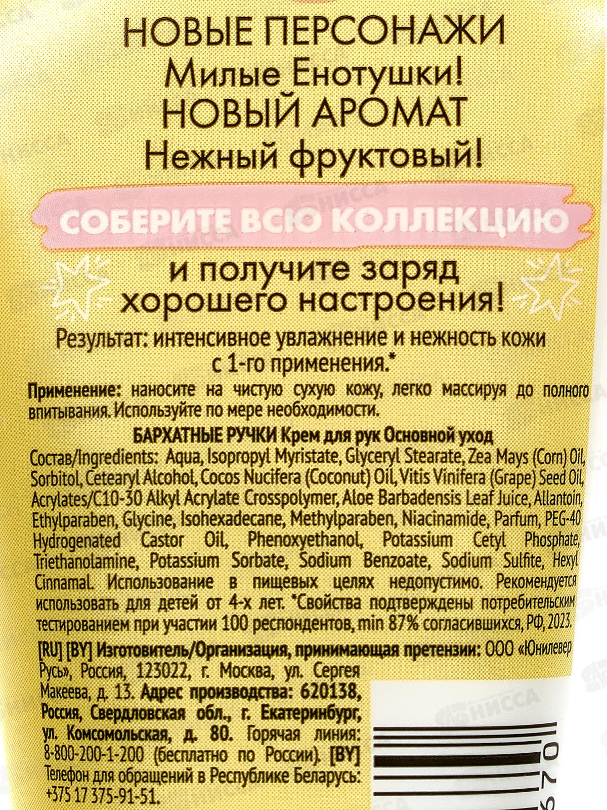 Концерн Калина БАРХАТНЫЕ РУЧКИ крем Основной уход.Устранение сухости 45мл *30