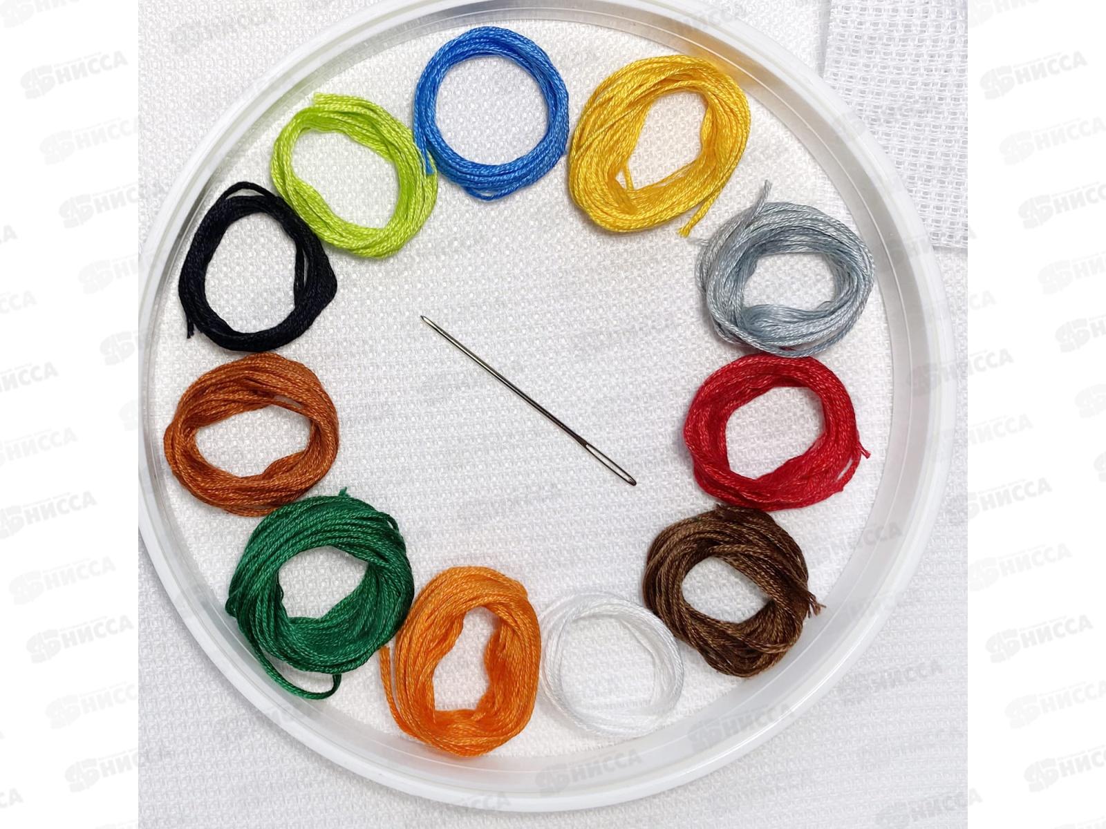 Комплектация: схема вышивки, канва, пяльца, игла, нитки 5 цветов