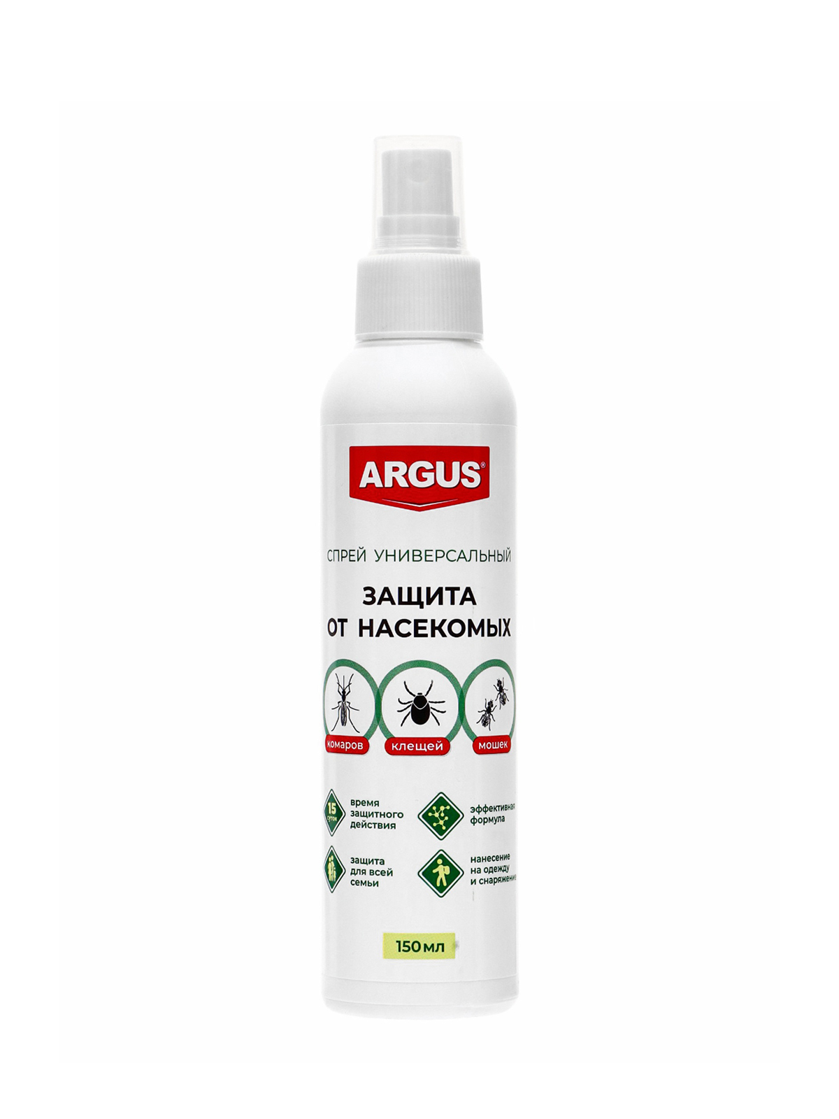 Универсальный спрей Argus предназначен для защиты людей от кровососущих насекомых: комаров, клещей, мокрецов, москитов, мошек. Применяется для обработки одежды, занавесей, противомоскитных сеток и другого снаряжения из ткани.
