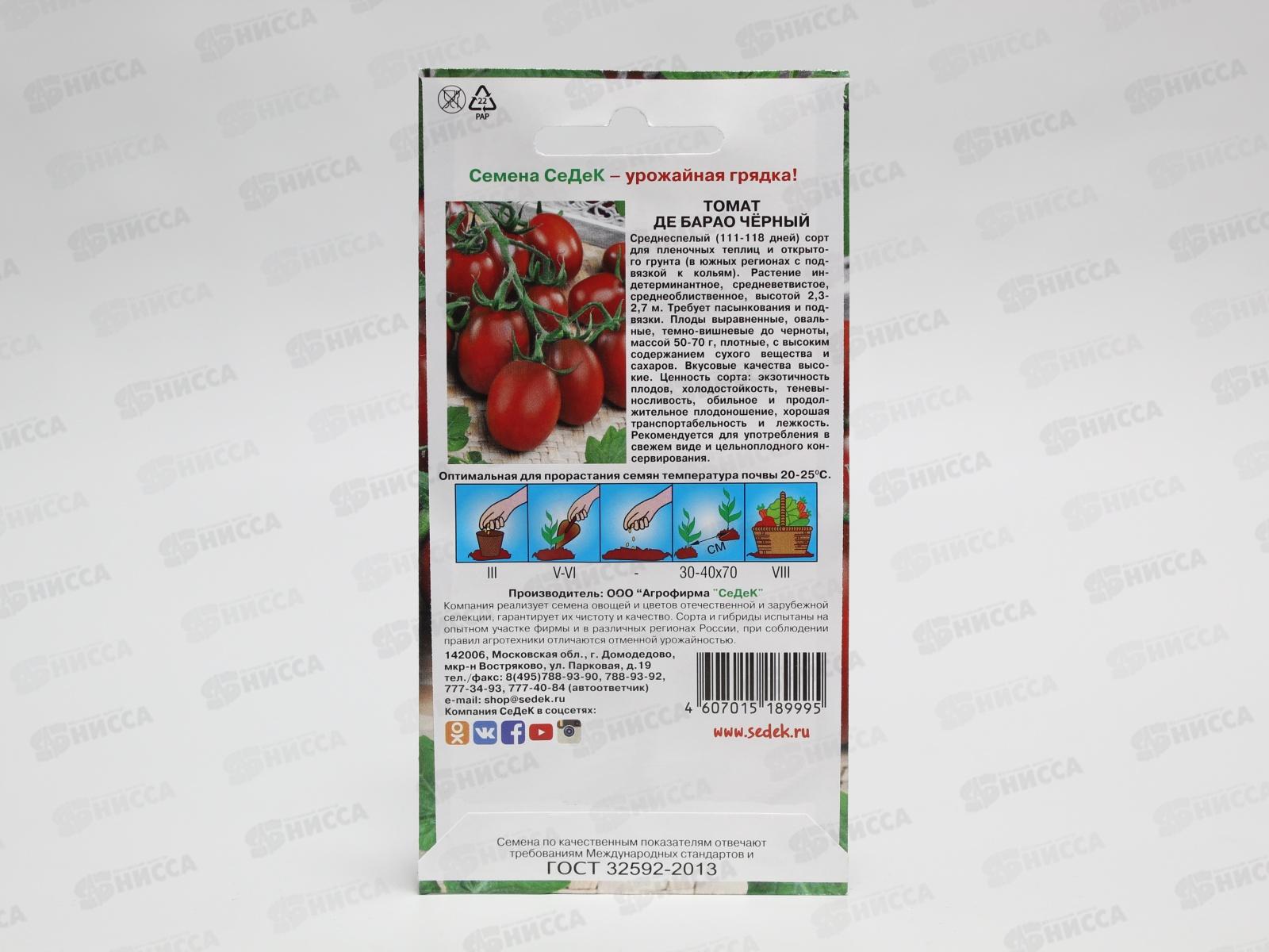 Среднеспелый (111-118 дней) сорт для пленочных теплиц и открытого грунта (в южных регионах с подвязкой к кольям). Растение индетерминантное, средневетвистое, среднеоблиственное, высотой 2,3-2,7 м. Требует пасынкования и подвязки. Плоды выравненные, овальные, темно-вишневые до черноты, массой 50-70 г, плотные, с высоким содержанием сухого вещества и сахаров. Вкусовые качества высокие. Ценность сорта: экзотичность плодов, холодостойкость, теневыносливость, обильное и продолжительное плодоношение, хорошая транспортабельность и лежкость. Рекомендуется для употребления в свежем виде и цельноплодного консервирования.